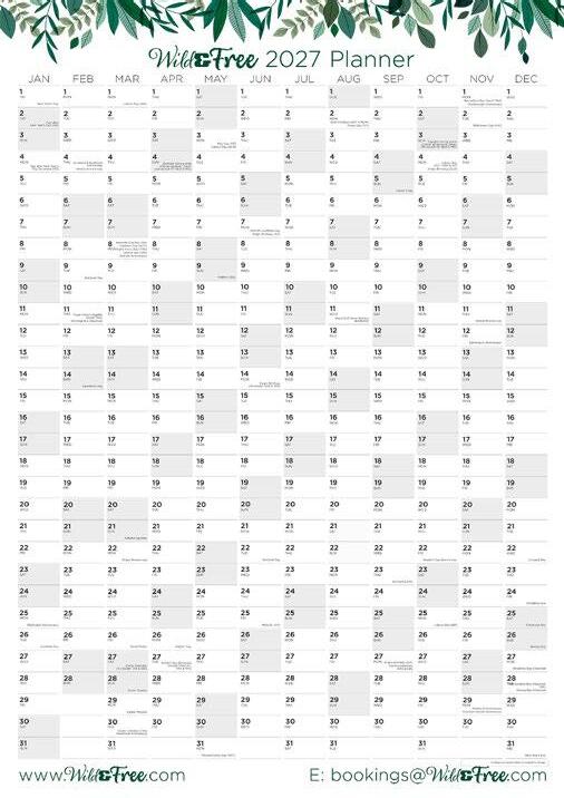 4-Colour Wall Planner. Printed 1 side on 250gsm paper.