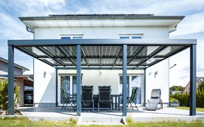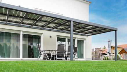 Mit einer Solarterrassenüberdachung nutzen Sie Ihre eigene Stromversorgung direkt auf Ihrem Terrassendach. Das innovative Design vereint die modernen Eigenschaften einer Terrassenüberdachung mit der zukunftsweisenden PhotovoltaikTechnologie.