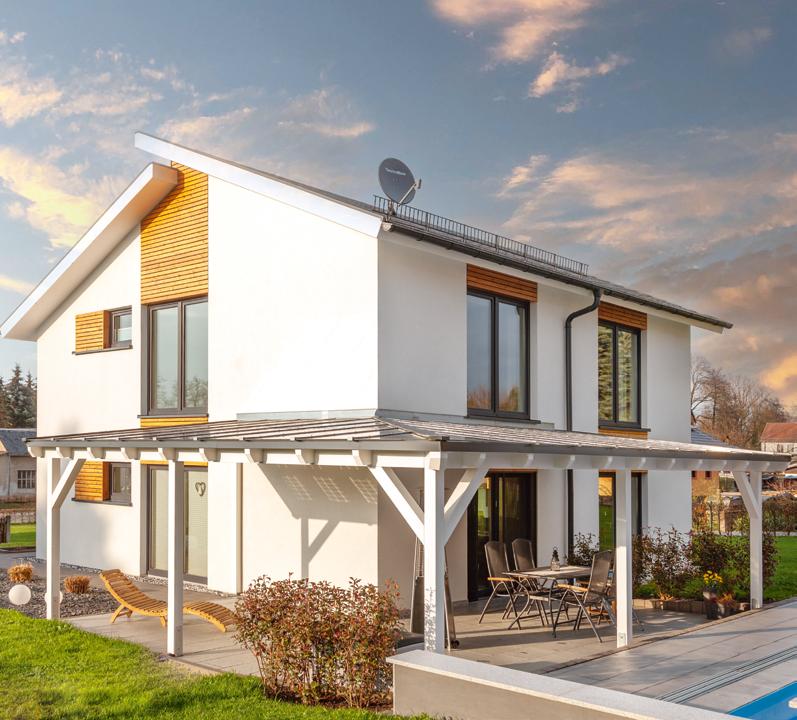 Mit einer SüdWest Ausrichtung können Sie bis spät in den Abend hinein Ihren eigenen Solarstrom erzeugen und gleichzeitig den Komfort eines erweiterten Wohnzimmers im Freien genießen.