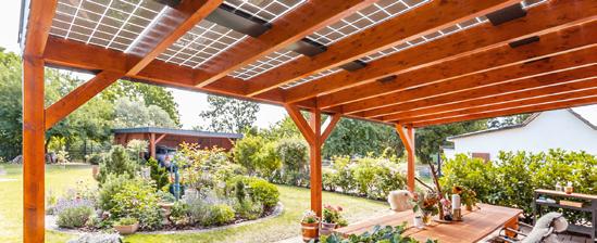 Dank des Solarterrassendachs genießt die Familie Tänzler die Sommertage noch mehr. Sie können nun jederzeit draußen sitzen, essen, spielen und leben. Neben der Stromerzeugung bietet ihnen die Überdachung Schutz vor Sonne sowie vor allen anderen Wettereinflüssen.