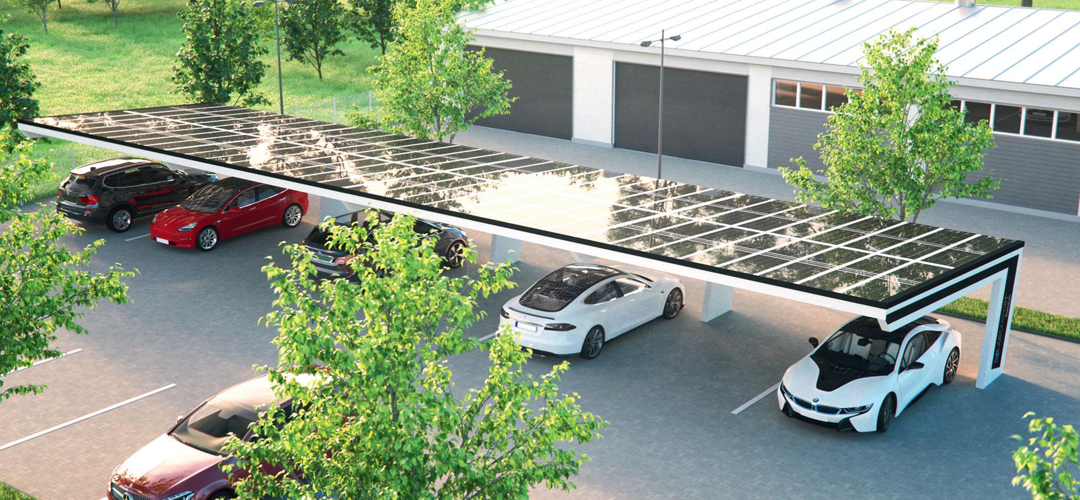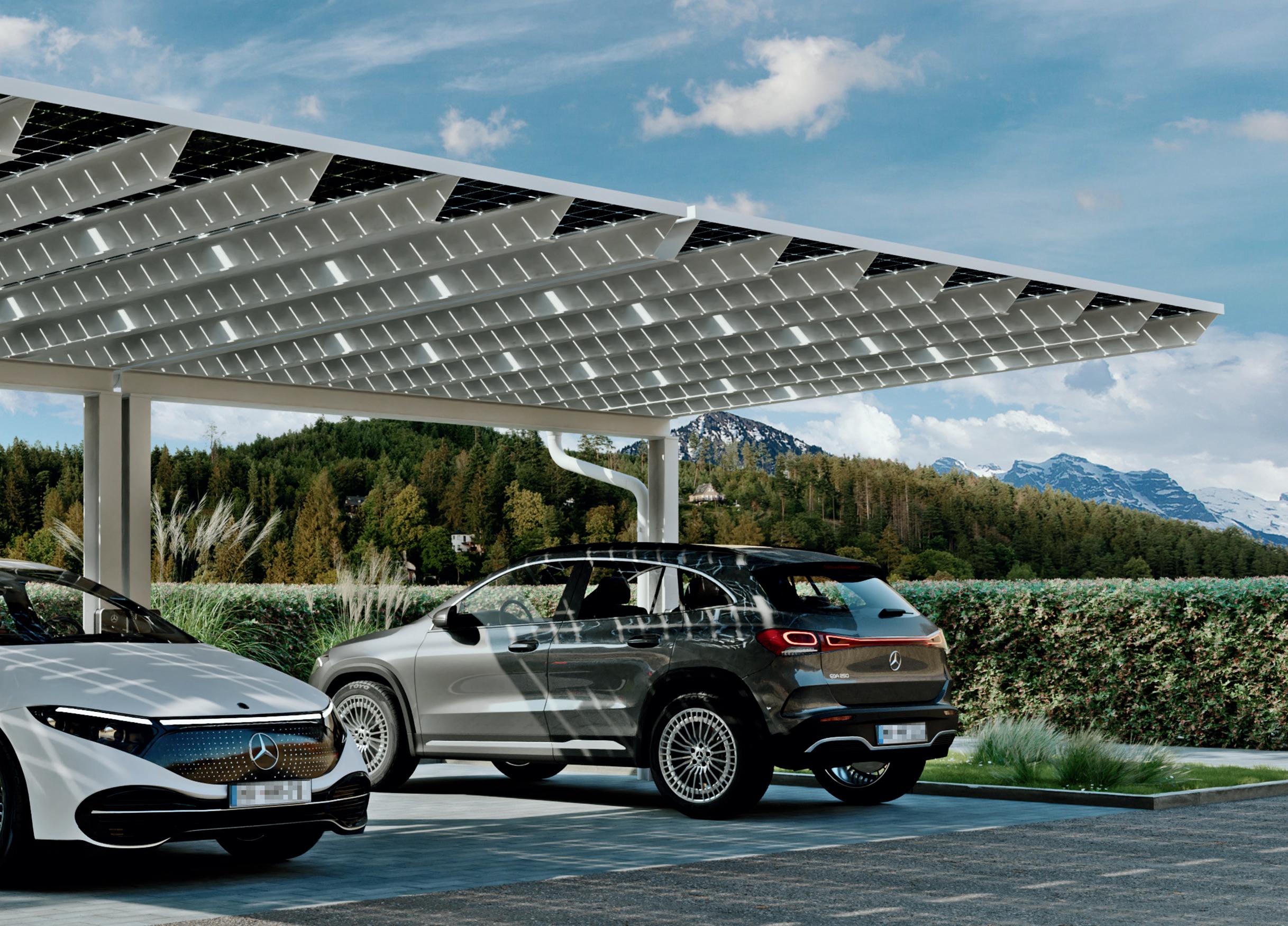 Das moderne Design ist eine schöne Lösung für Ihren Kun den- oder Mitarbeiterparkplatz – mit gleichzeitiger Möglich keit die erzeugte Energie für das Auftanken der geparkten Autos zu nutzen.