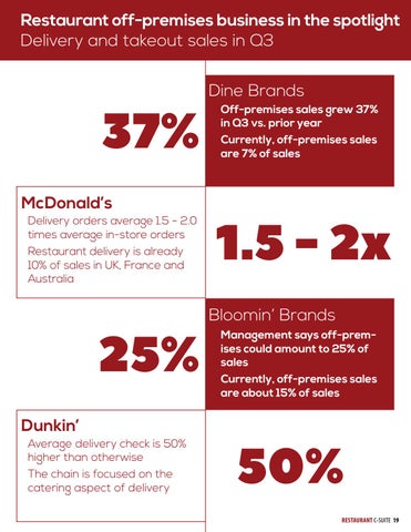 Dunkin’ Average delivery check is 50% higher than otherwise The chain is focused on the catering aspect of delivery RESTAURANT C-SUITE 19