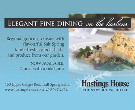This summer also saw the opening of the new restaurant The Gathering in Grace Point Square, formerly occupied by Bruce’s Kitchen. Chef Jonny Duquette settled on Salt Spring after 25 years cooking for the likes of Bill Clinton and Mikhael Gorbechev. His flair lies in presenting soul food, tapas style at prices that won’t break the bank. (facebook.com/thegatheringSSI)