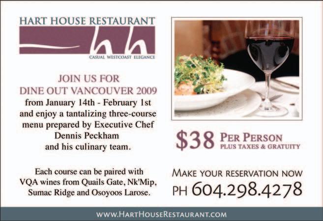 ® EAT CELEBRATING THE FOOD & DRINK OF BC TheLittlePiggy Bakeshop-Catering-Eatery WeekendFive-coursePrixFixeDinners -reservationsrequired FrozenSoupsandMealsnowdeliveredby ShareOrganics.bc.ca -FullServiceEventCateringPlanyourspecialoccasionswithus 1019FortSt(nearVancouverSt VictoriaBC,tel:250-386-1020 www.thelittlepiggy.com thelittlepiggy@gmail.com THE GRAND Waterfront Penthouse Steak & Seafood Restaurant Only 35 Minutes from Victoria & Nanaimo! FREE Conference Room www.FreeConferenceRoom.com * Penthouse Conference Center, With Room for up to 250 People. Perfect for Christmas Parties & Weddings. Our conference and banquet space can accommodate up to 250 people. Contact our event specialist to plan your event today! www.TheGrandResort.com Conference.Services@TheGrandResort.com * free conference room when minimum catering requirements are met. Oceanfront Grand Resort & Marina $10 discount will be deducted from the bill total when 4 or more adult brunches are purchased. Not valid holiday weekends $10 OFF With This Ad Exp. Mar. 02, 2009 The Grand Buffet #1 Sunday Brunch on Vancouver Island 120 Incredible Choices: Large Seafood Selections, Sushi, Omelette/Crepe/ Wa e Stations, Beef Carving Station & More! Call For Reservations: Only Per Person$19.95 $29.95 Holidays / Special Events