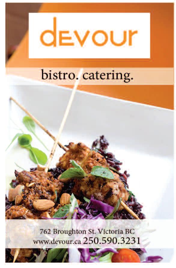 2 EAT MAGA ZINE J U LY | AUG UST 2012 *NEW* The Emile Henry BBQ Grill Stone for people who love to cook Bro admead V Vi ll age , V Vi ctori a 130 777 R oyal O Oak D Drive 250 727 2110 Bridal Registry Available E he T *NEW* Grill y Henr mile Stone a d i r B e l b a l i a Av y r t s i g e R l r adm 77 2 for fo ead age 7 50 co to love who ok Moss Street Market James Bay Market Downtown Vic toria Public Market Oak lands Sunset Series Goldstream Station Market Nor th Saanich Farm Market Sidney Summer Market Salt Spring Market Saturdays (10am 2pm), May Oct Corner of Moss St and Fair eld Rd Saturdays (9am 3pm), May Oct Corner of Menzies and Superior Wednesdays (12pm 5pm), Apr Oct Market Square, 560 Johnson Street Wed, Jul 4, Jul 18, Aug 1, Aug 15 (6pm 10pm) Oak lands Community Centre, 2827 Belmont Ave Saturdays (10am 2pm), May26 Oct Downtown Langford, Br yn Maur Rd Saturdays (9:30am 12:30pm), June Oct Saint John’s United Church, 10990 West Saanich Rd Peninsula Countr y Market Saturdays (9am 1pm), May Oct 1528 Stellys Cross Rd, Central Saanich Thursdays (5:30pm 8:30pm), Jun Aug Beacon Avenue in Sidney Saturdays (8:30am 4pm), Apr Oct Centennial Park in the hear t of Ganges Metchosin Farmers’ Market Sundays (11am 2pm), May Oct 4450 Happy Valley Rd, behind the rehall Local markets are all about freshness, fun, and community. Vendors of these markets make, bake, and grow ever ything. Farmers bring to you their farm fresh, wholesome foods, from fruits & vegetables, organics,,meats, seafood, and eggs to specialty cheese, jams, salsa, donuts, and so much more. Ar tisan o er specialty, one of a k ind, locally made potter y produc ts .Connec t direc tly with local farmers who personally bring their goods to your plate or the Enjoy quality seasonal food, picked at the height of its natural har vest Take time to suppor t local farmers and ar tisans in an atmosphere of festivity and community to positively impac t your environment by buying within the shor test distance to where you live. Good for you; good for ever yone. FRESH | ORGANIC | LOCAL | SUSTAINABLE1624 Government St. Victoria Chinatown Summertime tea fun on Facebook: Weekly prizes & grand prize giveaways, special offers, recipes such as luscious tea popsicles, summer tea-tinis & more! join the fun! facebook.com/SilkRoadVictoria