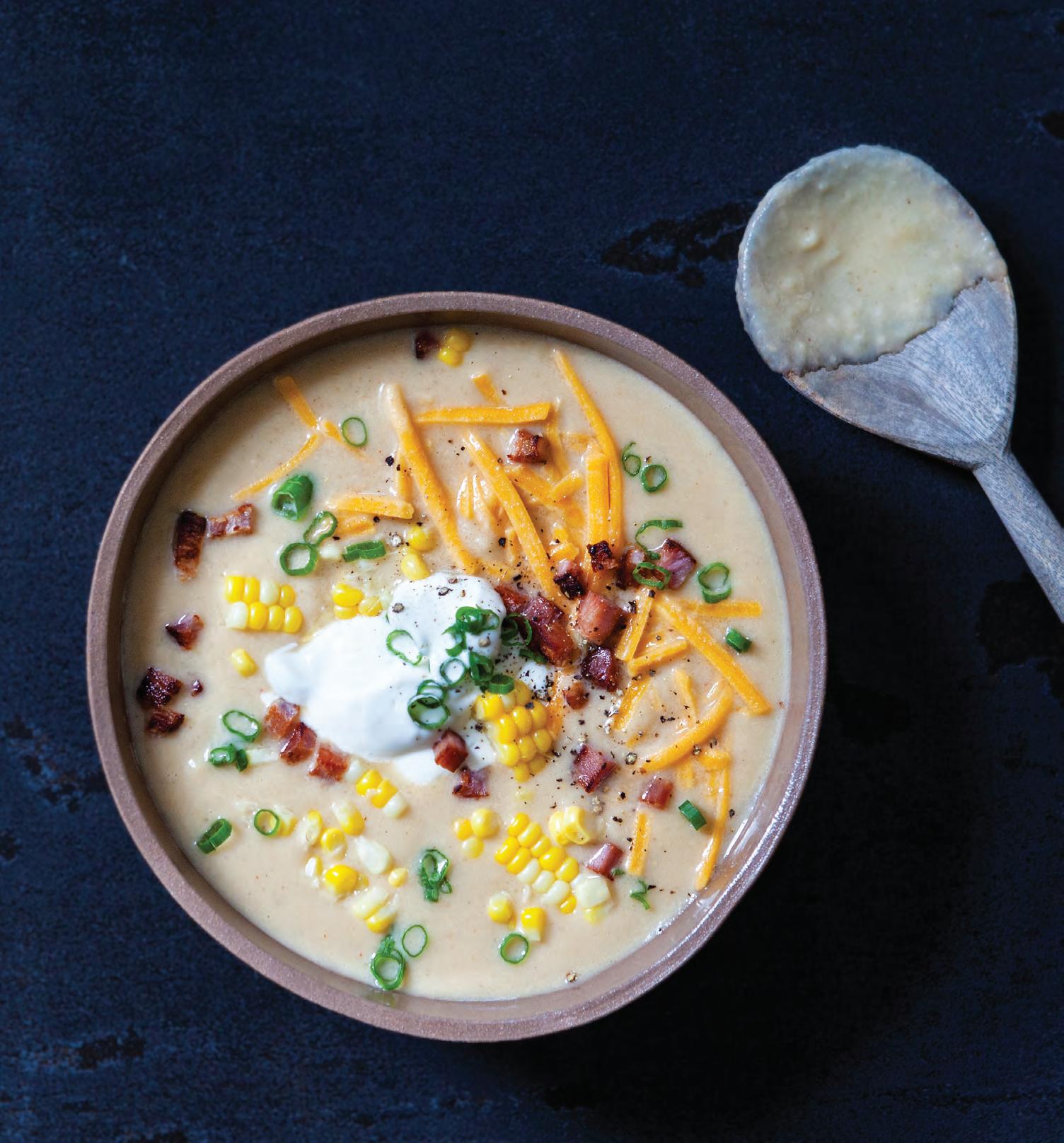 We want to surround our readers in that warmth and comfort. From the nostalgia of kitchen tools your grandmother or mother used that are still useful today (Cinda Chavich’s Top Drawer Vintage pg 16) to fondues and raclettes (Shelora Sheldan’s Side Dish pg 19). Our recipes also bring warmth. Masterclass focuses on a lentil soup and flatbread (pg 24), Rebecca Wellman brings us lemony beans on toast (pg 14), and Jennifer Danter adds a tex-mex spin to a loaded baked potato soup (pg 20).