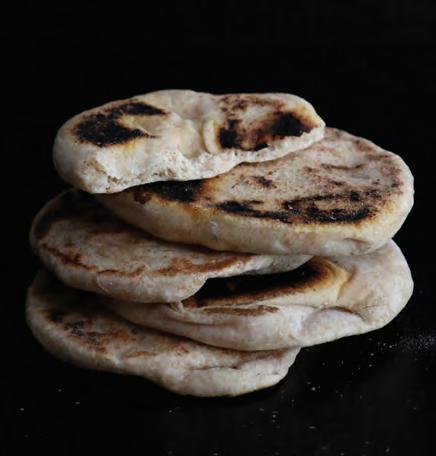 This whole wheat version is particularly light and fluffy owing to a bit of yogurt and a pinch of yeast. The yogurt adds a tangy note and keeps the bread moist and supple. Flatbread can be baked on a preheated pizza stone in a hot oven or cooked over a hot grill. I prefer the latter because I enjoy the charred bits. Flatbread is especially delicious served warm.