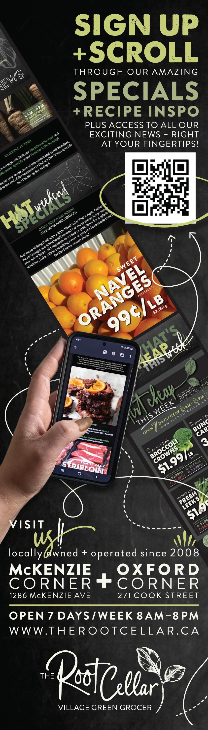 2 JANUARY/FEBRUARY 2023 Broadmead Village nichevictoria.ca | 778-432-4243 Meet local. Eat local TAKE & BAKE LET US DO THE WORK TODAY BEAUTIFUL BUBBLES 5 YEAR AGED KATHERINE’S SPARKLE Shop Local www.rockycreekwinery.ca @rockycreekwinery C M Y CM MY CY CMY K Eat Ad - Jan-Feb FINAL.pdf 1 2022-11-24 11:55:11 AM