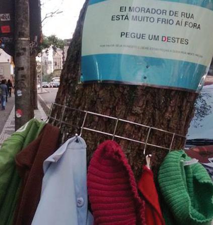 As baixas temperaturas do inverno deste ano desencadearam iniciativas notáveis, como a campanha “Árvore Solidária” Kamilla Ferreira, Rafaela Bez e Victor Hugo Curitiba. Inverno de 2013. Temperatura mínima de -8ºC. Probabilidade de neve na cidade. Ao ler essas informações no noticiário, a percepção de 95% das pessoas é: “Tempo ideal para tomar um café embaixo das cobertas e assistir a um bom filme”. No entanto, habitantes comuns desta cidade gelada resolveram ousar. Em meio a todo frio, à garoa fina e à ausência do sol, alguns decidiram auxiliar quem mais precisa: os sem-teto e as crianças.