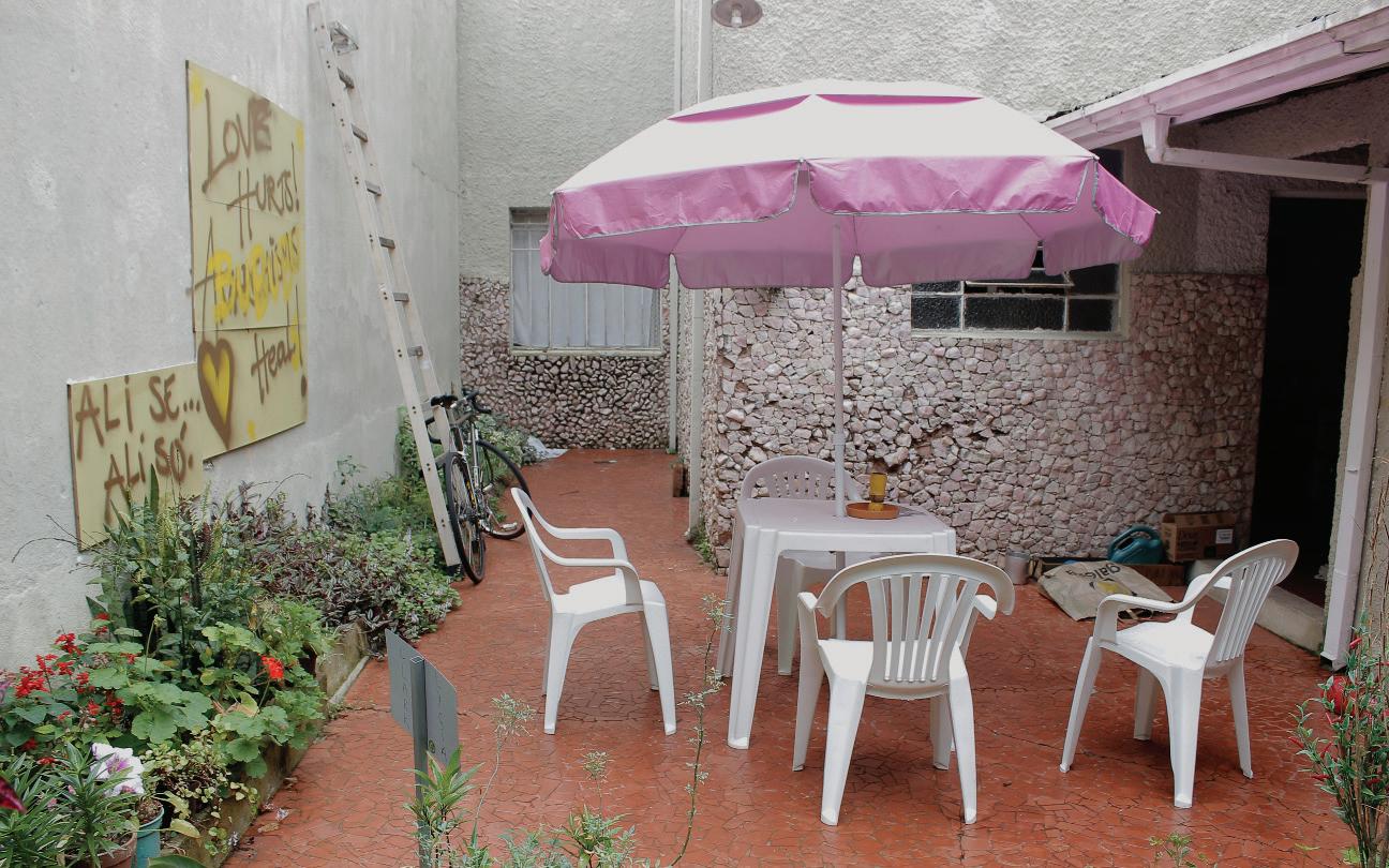 O jardim da Casa Selvática se torna também um ateliê onde se faz arte e acontecem encontros.