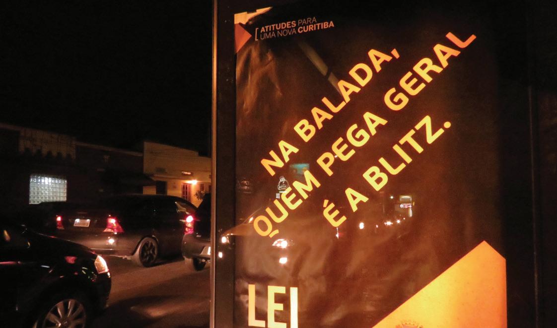 Em Curitiba, em qualquer dia da semana, ao menos três blitze são responsáveis pela fiscal ização da nova regulamentação da Lei Seca. Lançada do dia 14 de junho, a campanha “Lei Seca – Vai Pegar” é destinada à realização de ações de conscientização sobre os perigos de dirigir sob efeito de álcool, assim como a in speção mais rigorosa destas infrações. A inicia tiva instaurou a obrigação de três blitze diárias em todas as regiões de Curitiba, além de blitze educativas, como anúncios em internet, mobil iário urbano e ônibus. A ação é permanente.