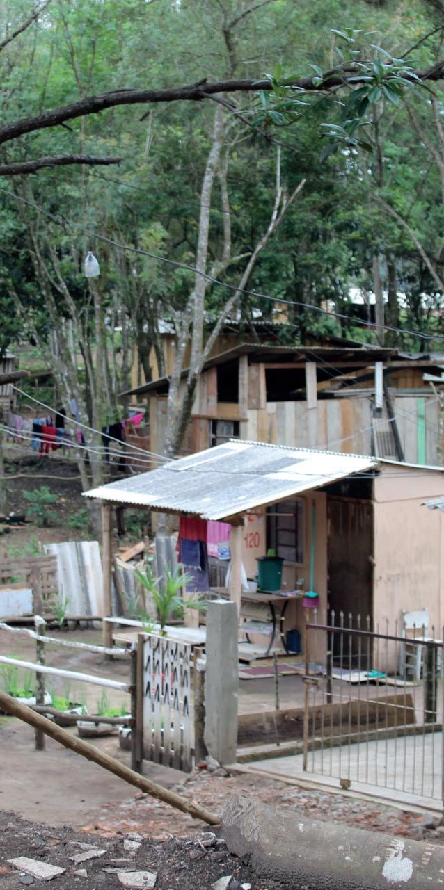 Camila relata que a renda do marido os ajuda a comprar apenas o necessário para a alimentação de seus filhos, e o restante do sustento alimentar vem da contribuição de outras pessoas. Ela fica mais tranquila com esse apoio que recebe da comunidade, mas nem sempre é suficiente. “Hoje é o básico, arroz e feijão, e mesmo assim às vezes falta.”