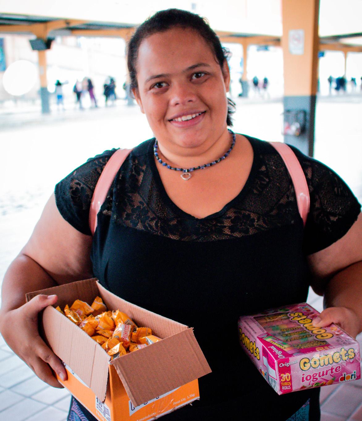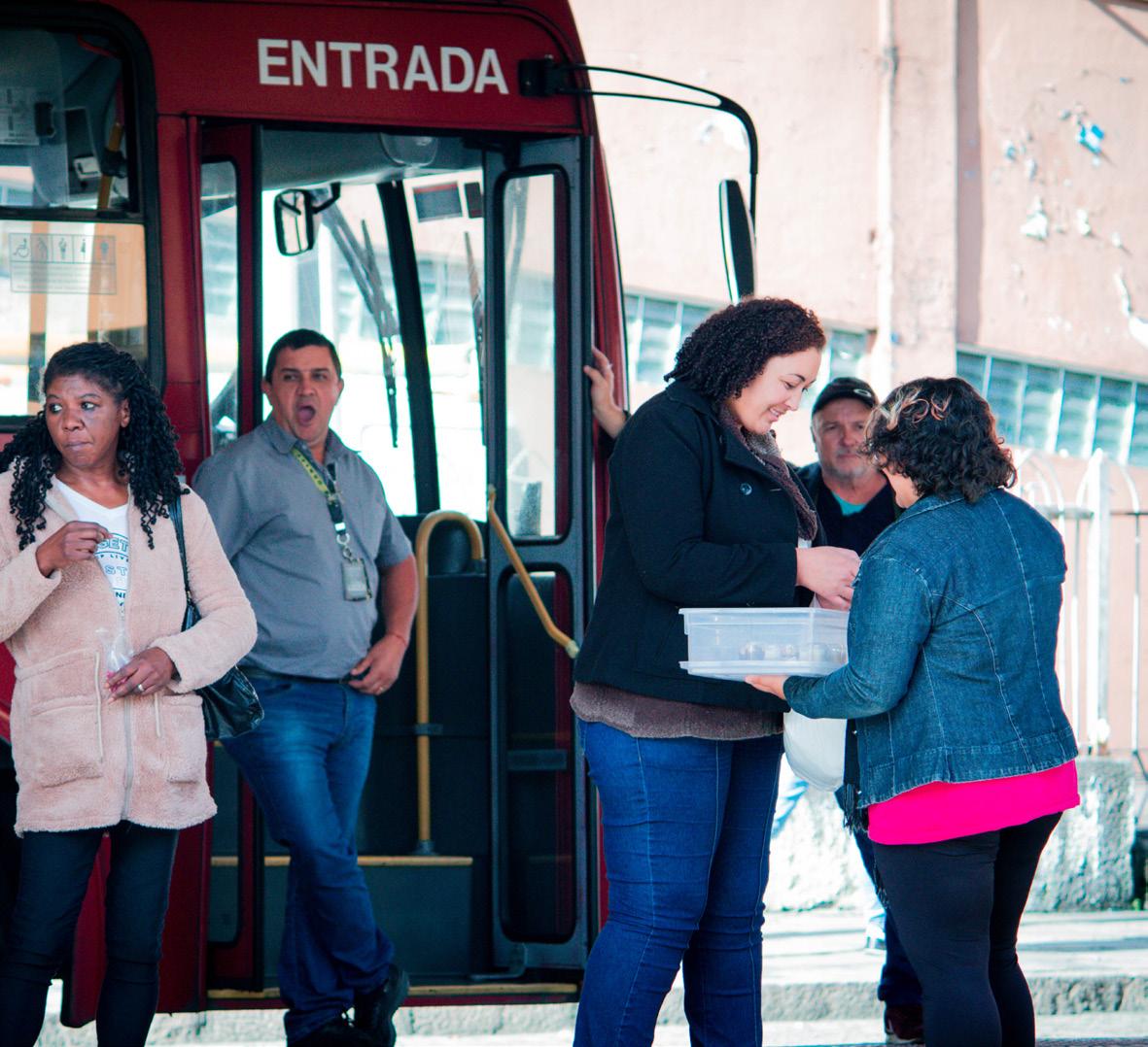 Decidiu que tentaria vender os produtos restantes e se surpreendeu positivamente com os passageiros. Desde então, trabalha dentro dos transportes públicos de Curitiba. Fez mais uma troca. Mudou dos bombons e salgados para a cocada.