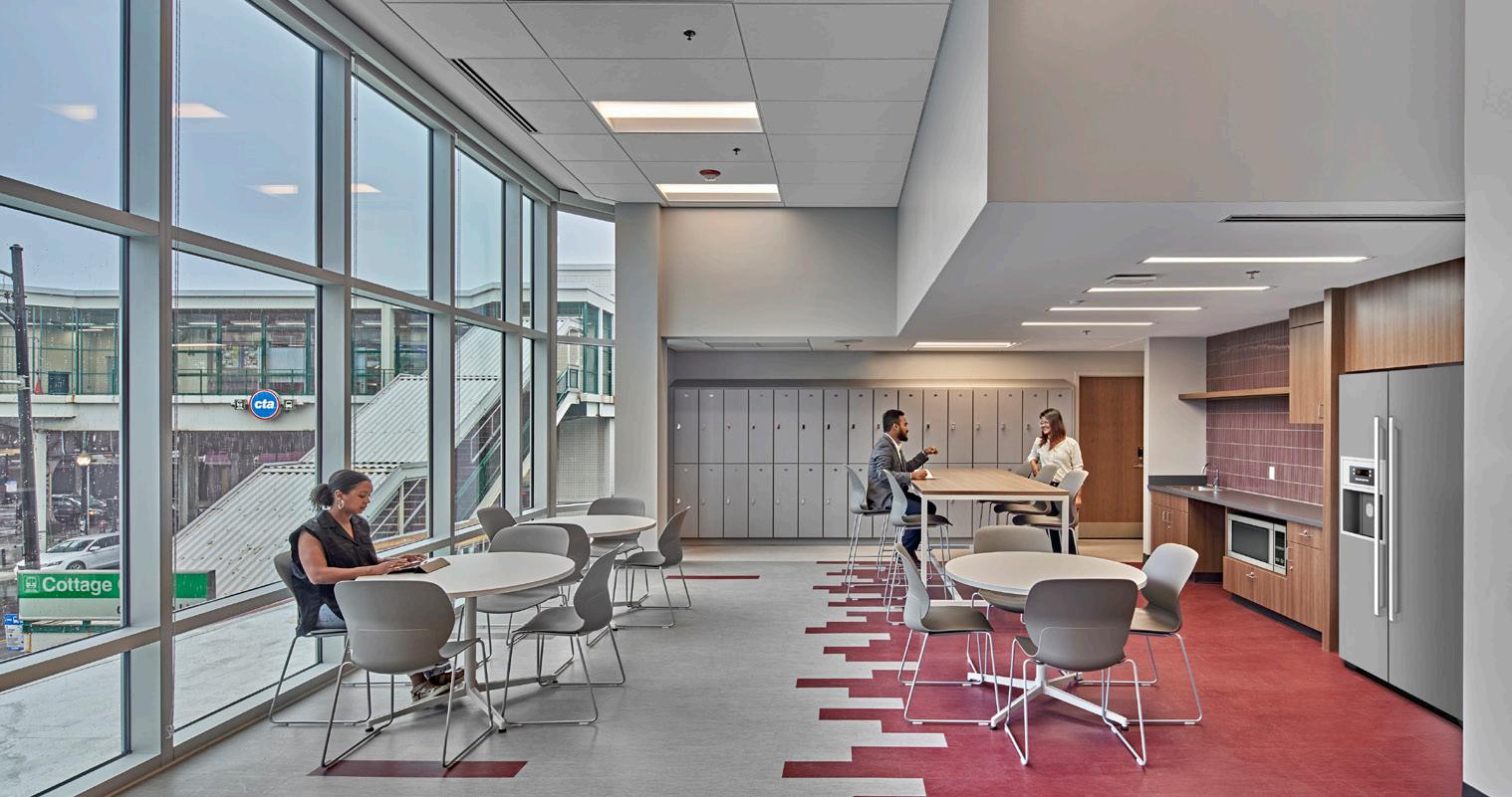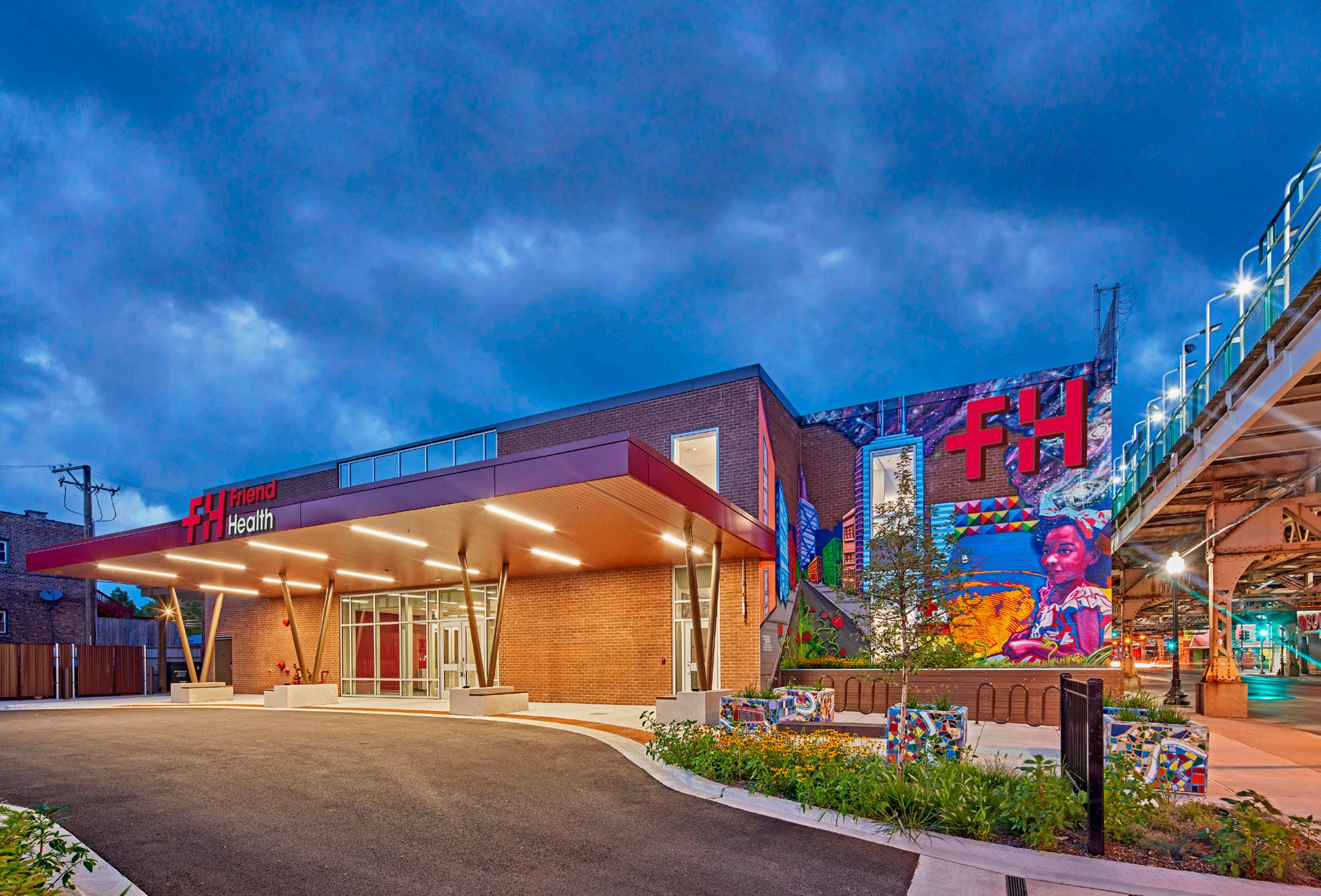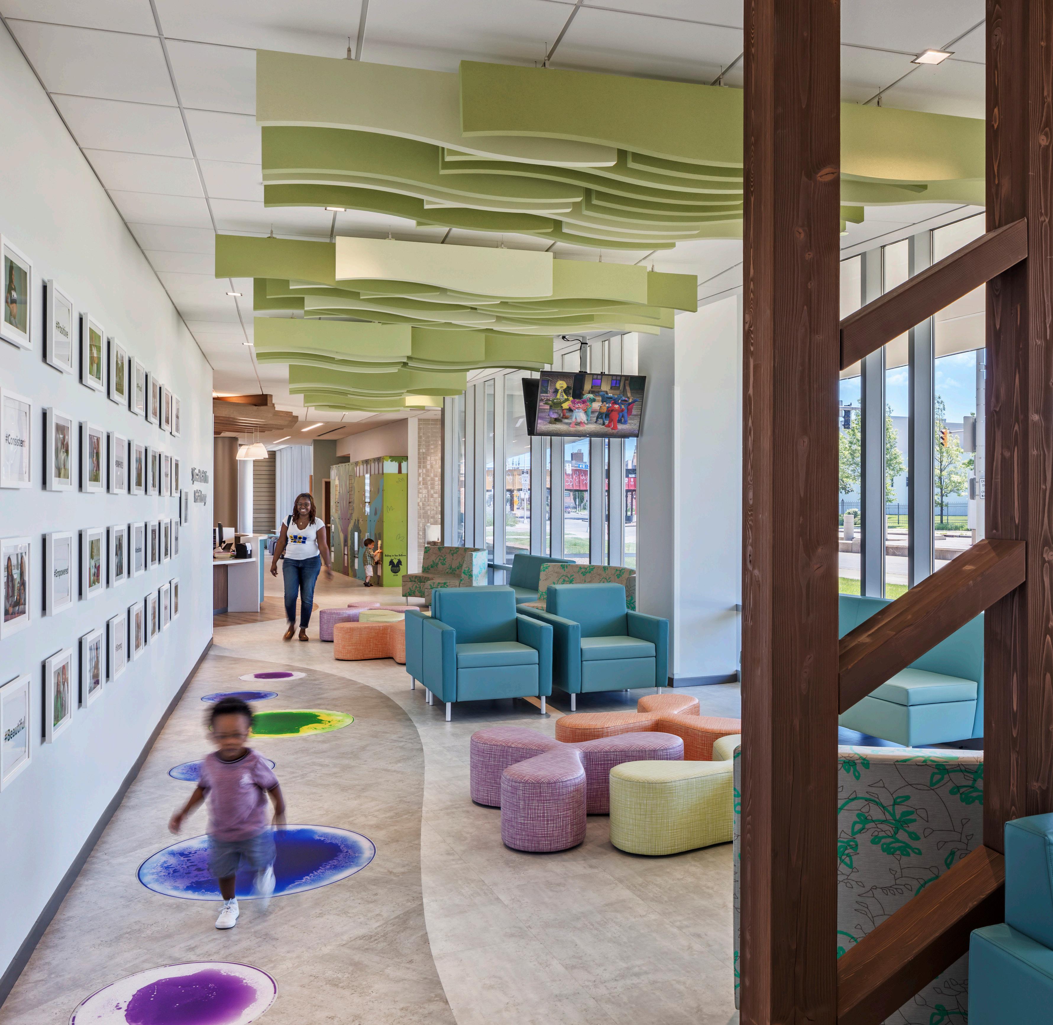 On-site services and amenities address the specific needs and health disparities of the community, including a community farm, WIC programs, food pantry, nutrition counseling, an education center, family counseling, dental care, imaging suite, pharmacy, clinic space, retail and cafe space. The second floor features primary and specialty care clinics and rooftop gardens.
