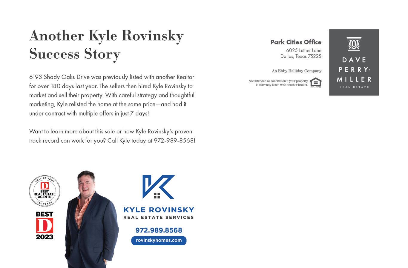 All Kyle Rovinsky VIP Open Houses are hosted by Kyle and are curated like a TRUE EVENT! Caterers are hired to pass delicious hors d’oeuvres and bartenders offer cold beverages. Again, this level of representation adds value to the property and generates more interest! (Side Note: the buyer for 6193 Shady Oaks first came to the property as a guest of this open house.)