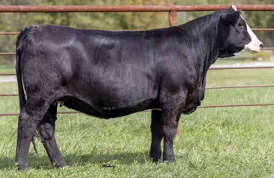 ASA#3939979 BD: 2/1/21 Tattoo: J95G Black Baldy Polled 3/4 SM 1/4 AN Cow Adj BW: 75 Adj WW: 653 THSF Lover Boy B33 HTP/SVF Duracell T52 RP/MP Right To Love 015U Cason’s Miss Engage Coleman Engage 5255 G95W Cason’s Miss Joy Cason’s Pride & Joy Simmentals • Cason’s Miss Caraloine is a SimAngus female sired by Lover Boy, her dam is a Coleman Engage daughter, Coleman Engage is an PB Angus bull, What a nice female moderate framed deep and soggy. She is mated to CLRS Guardian with a heifer calf, planed mating API 178 and TI 98.9 A.I. Sire: CLRS Guardian 317G on 4/24/22 • Heifer • Due: 2/1/23 Est. PM EPDs: 15 -1.6 89 132 .27 9 27 72 21 12.4 Carcass: 36.95 -.30 .54 -.04 .95 178 99