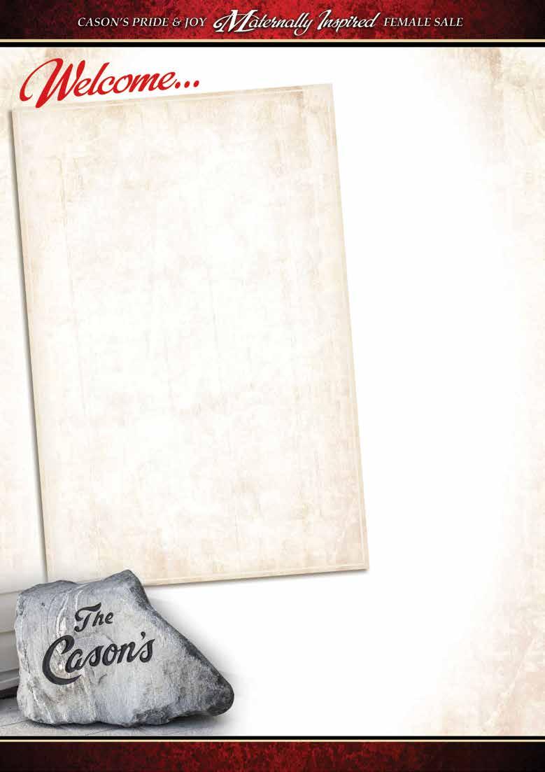 WELCOME TO OUR 4TH ANNUAL FEMALE SALE! Denny & Janet Cason Landon, Brittney, Tucker & Neleigh Colton, Cassie & Callah Cason 2077 715th Avenue, Albia, IA 52531 Denny Cason 641-814-3332 Landon Cason 641-799-7350
