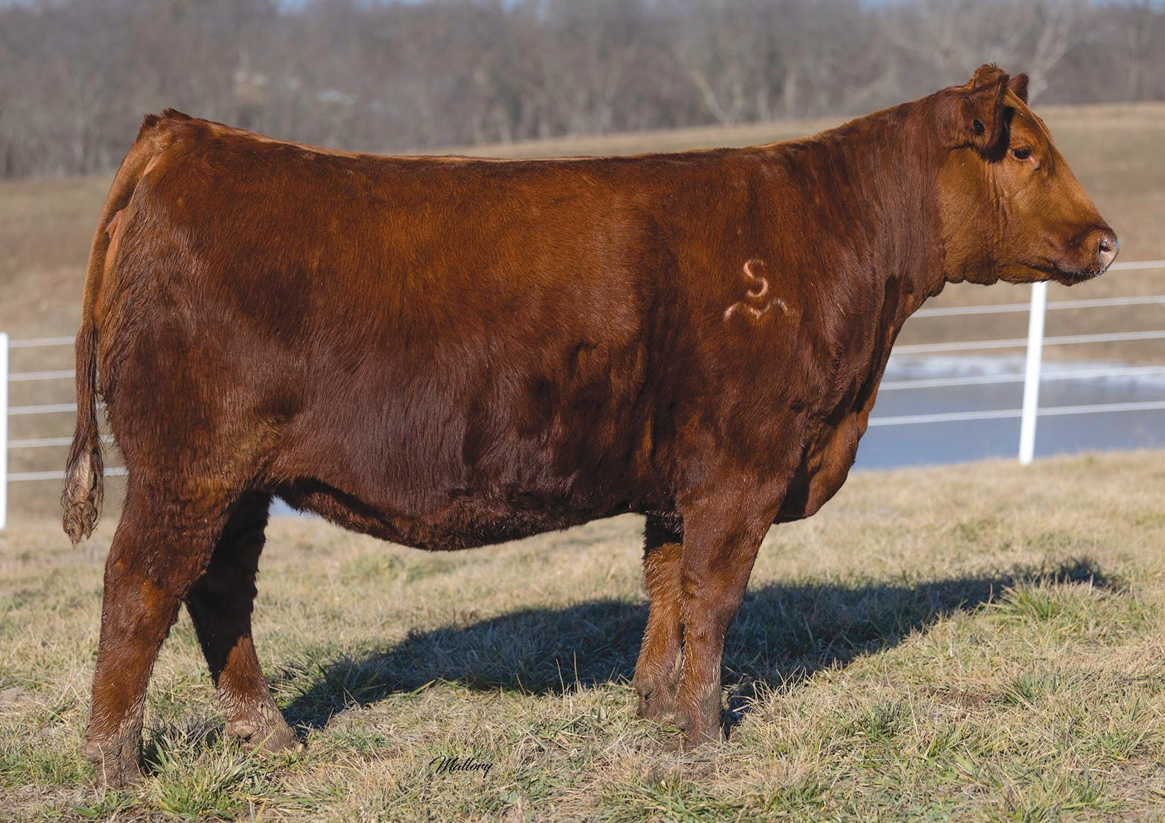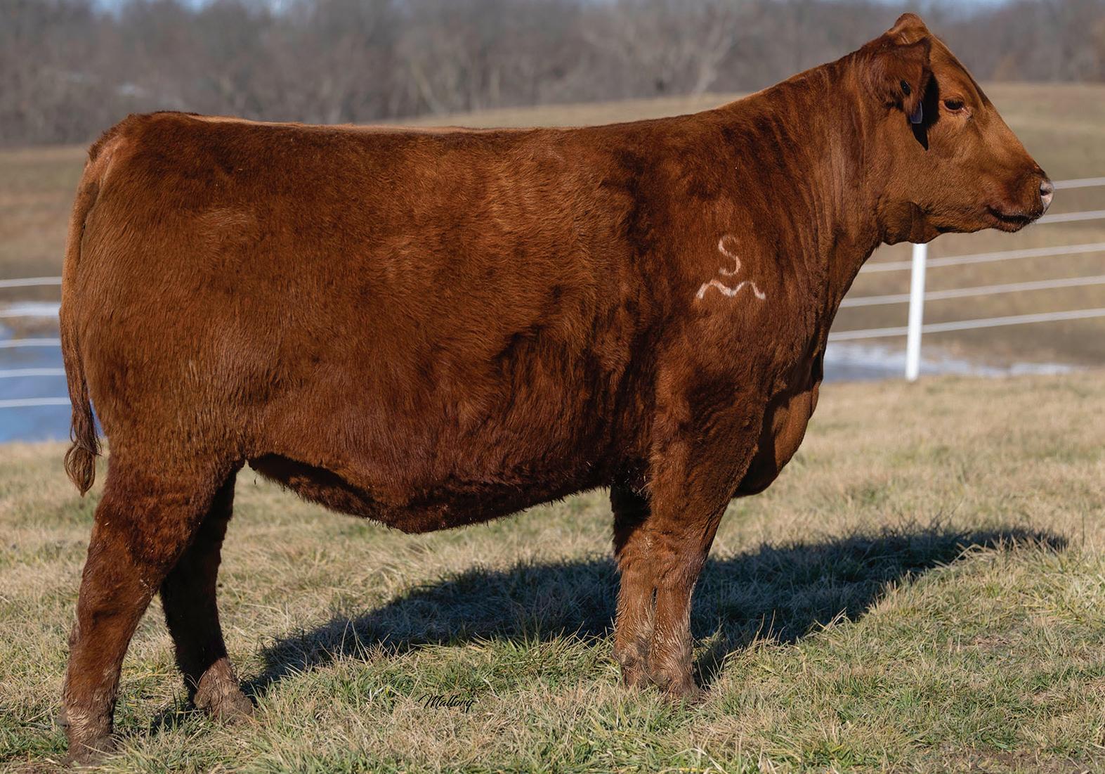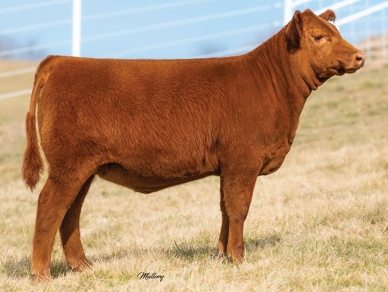 If you are looking for a red bull to add look and style, this Parabellum son will do the trick. Long fronted, sound legged and impressive muscle shape. Parabellum semen is in short supply, this bull can pick up where his sire left off.