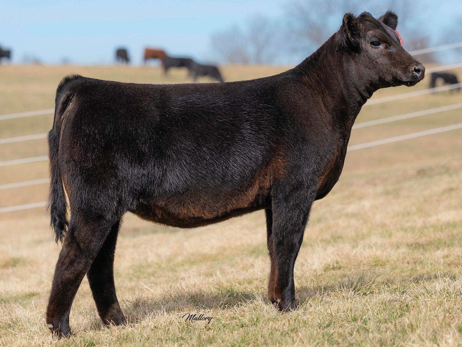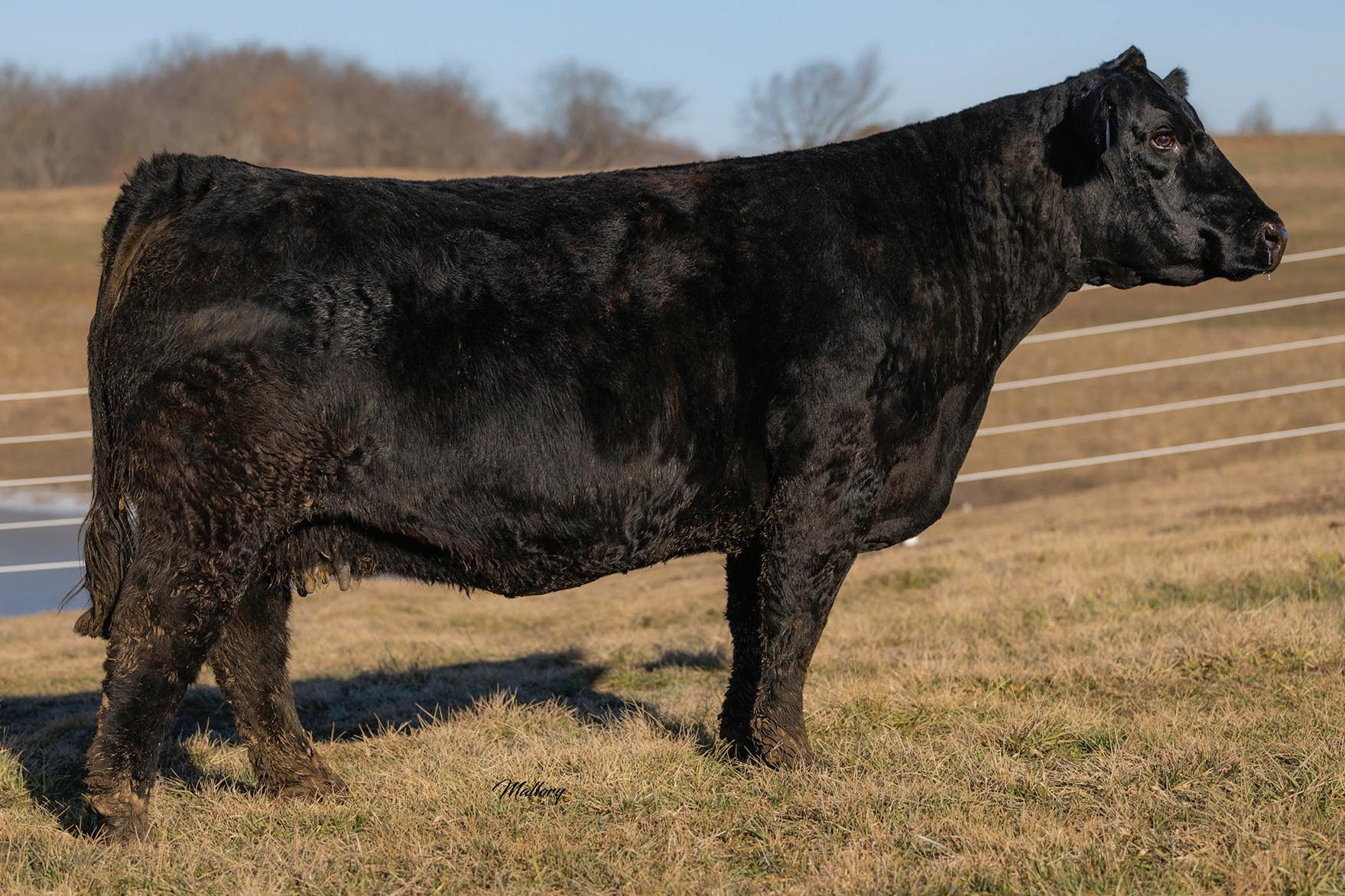 The most exciting female in the bunch, an awesome SimAngus. Flawless in design, you’ll notice her long front end coming high out of her shoulder. She’s the type and kind for today, with a great hair coat and style to burn. These C1 cows will walk out of the show barn and go right into production. The Follow Me daughters are hanging banners across the country, don’t let this one slip away.