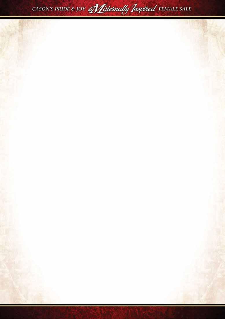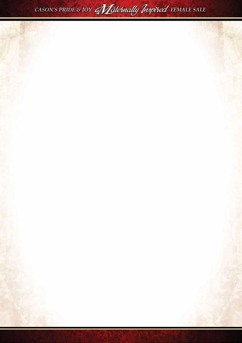 Cason’s Miss Jewel E26C Cason’s Mr Weston Cason’s Miss 26 A.I. Sire: THSF Lover Boy B33 on 4-29-23 • Due: 2-6-24 Est. PM EPDs: 12 .65 85 126 .26 5 26 69 14 14.3 Carcass: 28.3 -.41 .34 -.08 .86 142 89 Pasture Sire: Mr J04 on 5-22 to 7-27-23 Breeder: K-C