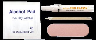• MINI GLUE, NAIL FILE, CUTICLE STICK, PREP PAD INCLUDED.