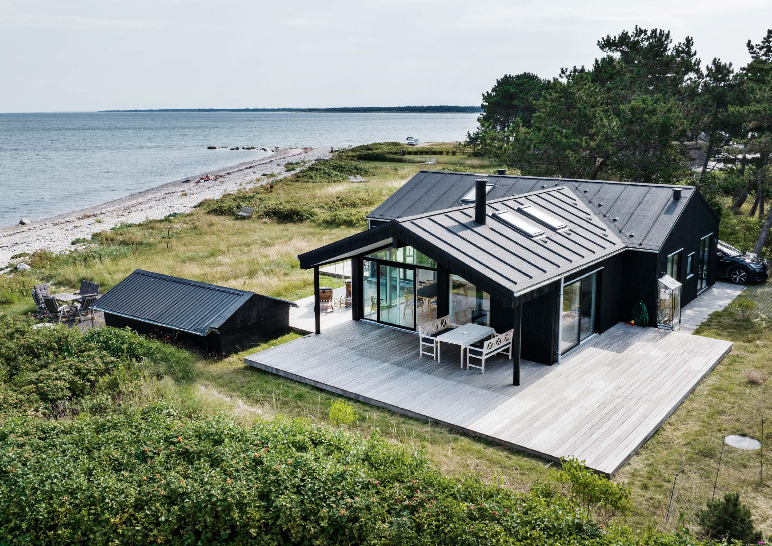 Elisabeth og Mogens valgte at bygge et nyt sommerhus, da de erfarede, at det oprindelige hus ikke var holdbart som sommerhus for hele familien. Lykken er nu masser af energigivende lys, der strømmer ind af de store panoramavinduer.