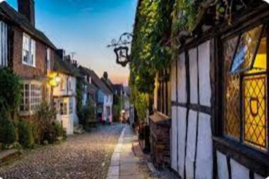 The beautiful medieval town of Rye, East Sussex, with its cobbled streets and fortified town gates, built to prevent a French invasion during the Hundred Years’ War.