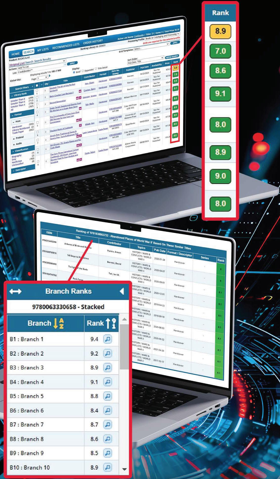 It provides System-level and Branch-level Circulation Ranks that help librarians make more informed purchasing and quantity decisions based on real usage patterns of similar titles within your system and branches.