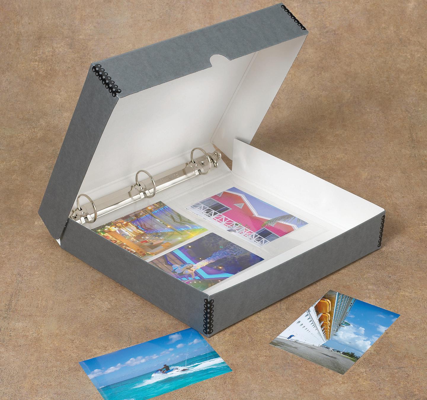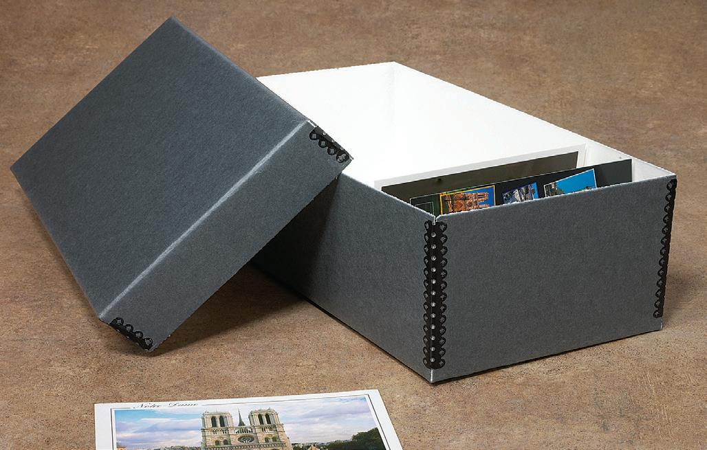 Two-piece long-term storage box keeps postcards and other valued collections safe from dust, dirt, and damage