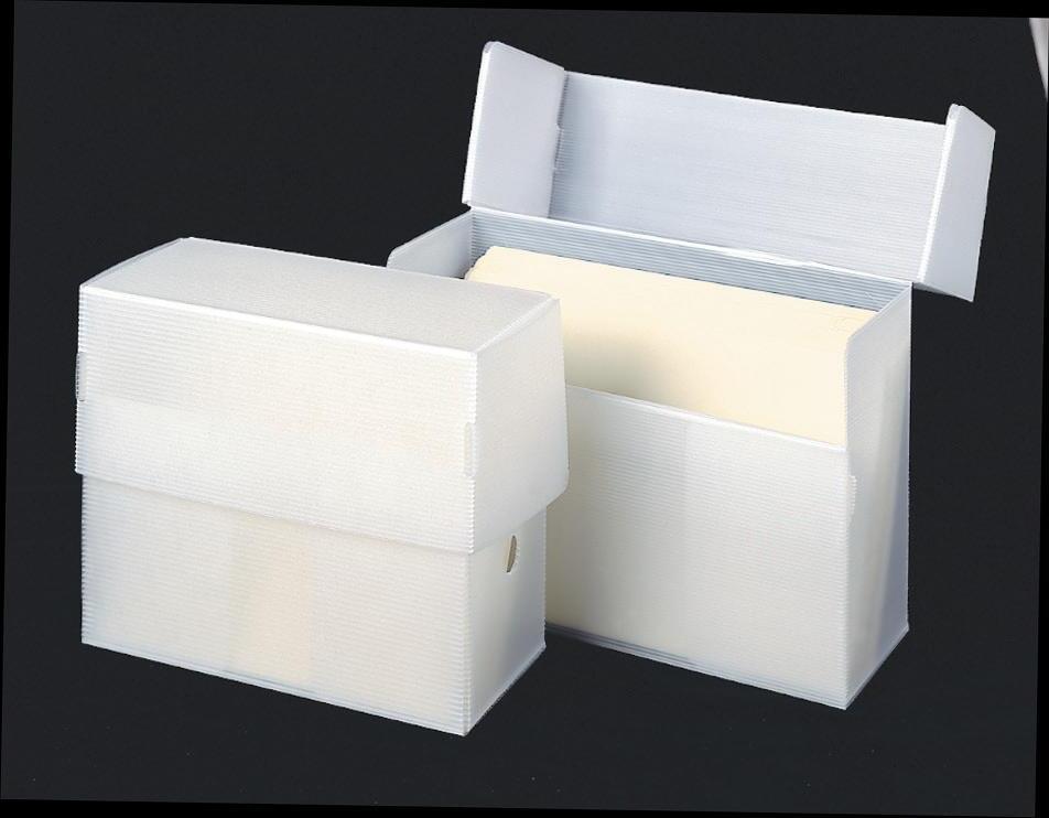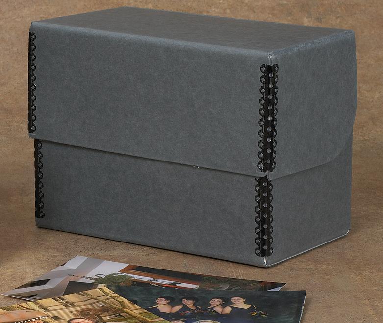 • Large two-piece box with shallow lid safely stores up to (600) 4" x 6" fiche in envelopes