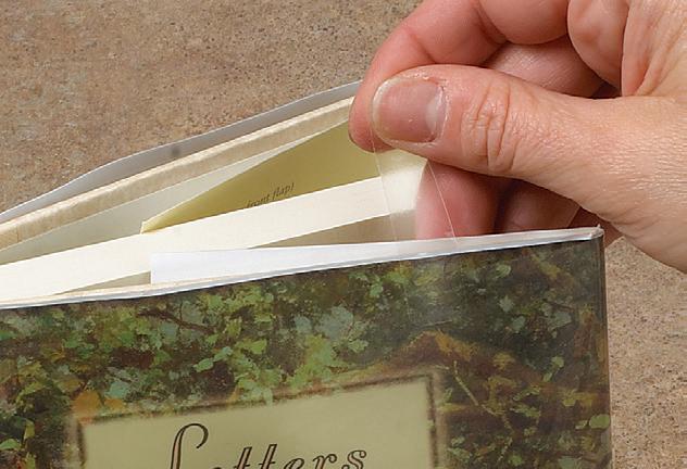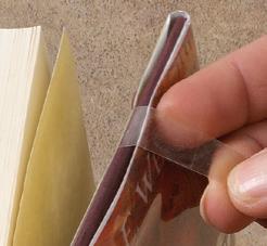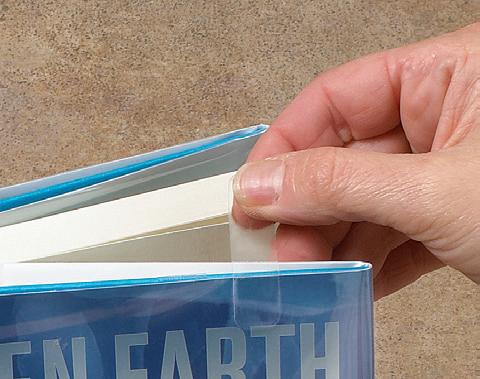 • Anchor covered jacket to the book with optional self-stick tabs as shown or with attaching strips (pg. 16) using one of the methods shown on page 9