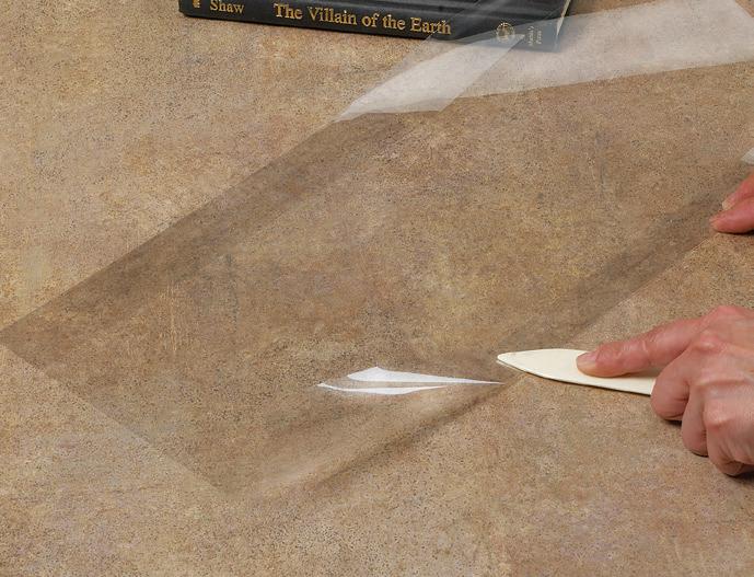 • Fold film up to meet the bottom of the dust jacket and crease with a bone folder.