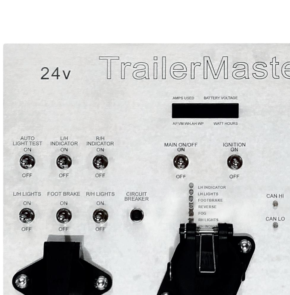 Designed to enable one operator to test the complete trailer lighting system without the need to connect a tractor unit, using the 24N and 24S power sockets, and to test the ABS warning lamp function on the trailer using the ISO 7638 socket.
