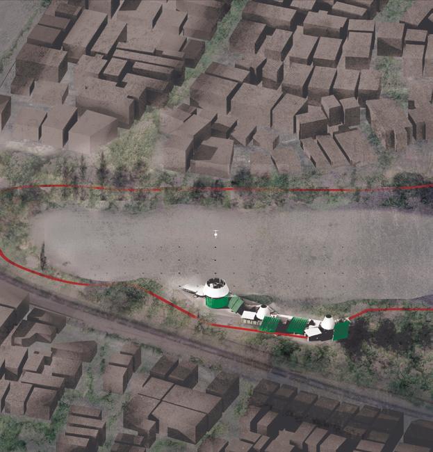 A series of kilns will re-appropriate the man-made garden ground (that was once swamp) to Democratic Huts, abiding by the precision of a rowing track. Urban Shuttering will provide a transition between Ganga measure and the conditions demanded by social measures. Ganga’s Cast of Gags will reveal a new garden biopolis to initiate a di erent Boat Club mentality for the bene t of all folk.