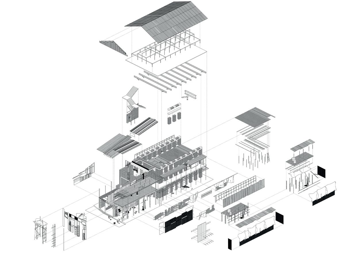 5 | (Overleaf) Exploded Axonometric of the Currency Building and Abhay Mitra Street