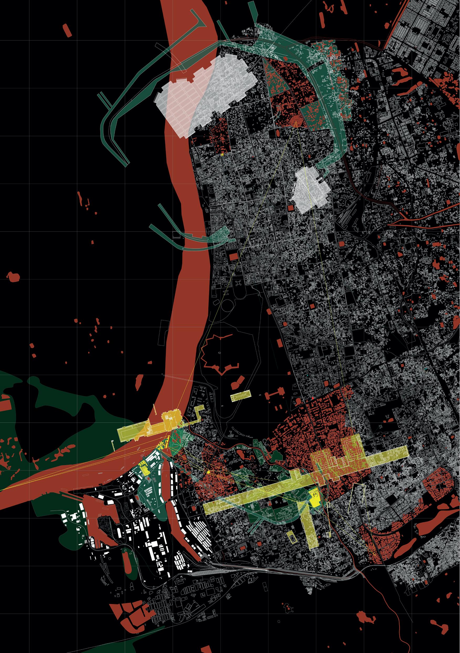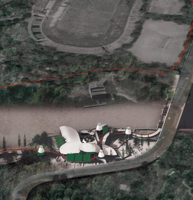is project breaks the hard urban boundary within Calcutta. e pattern of the Calcutta wetlands is superimposed over the existing patterns of Kidderpore Dock, as if one system is imprinted into the other. is promotes a new healthy urban ecology with high degrees of programmatic, material, formal, technological and environmental exibility. By such a re- and de-territorialisation of the Kidderpore dock, Kidderpore Dock slowly transforms into a dynamic and reciprocally exible human-environmental civilisation.