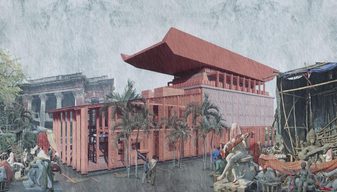 Kumartuli is the cradle of the Gods in North Calcutta. e clay made idols in Kumartuli are one of the oldest surviving handicrafts of India. e artists here are the people who bring the supernatural power of the gods down to the earth. However, contrary to its important position, Kumartuli is facing environmental, economic and social problems. In order to alleviate these problems, this project proposes to elevate the place in two ways: rst, by enhancing the recognition of Kumartuli as a speci c civic amenity of gallery and workshops for both residents and visitors; and second, by extending other social amenities across Kumartuli.