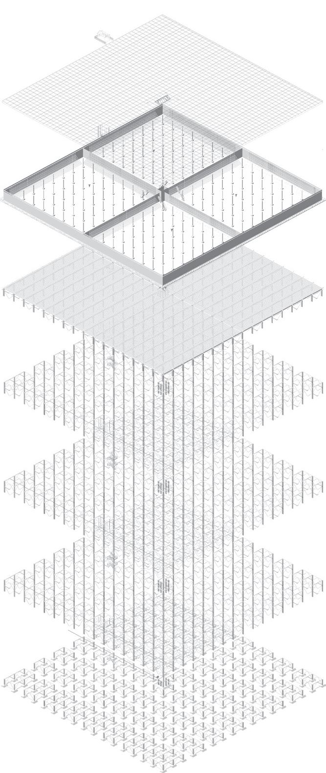 ree of these territories of “whiteness” are at once created and sustained by strategically placed, newly conceived objects of “black”. e blotting instruments of the Oriental Skylark, the Blue Whistling rush and the Common Iora negotiate “enzymatic territories” using senses speci c to their species and draw in wetness from surrounding water systems. ese “ecosophic objects” form in ltration basins which slow water down and soak it away to alleviate runo , while creating public landscapes from which the environmental and structural cores of the architecture rise.