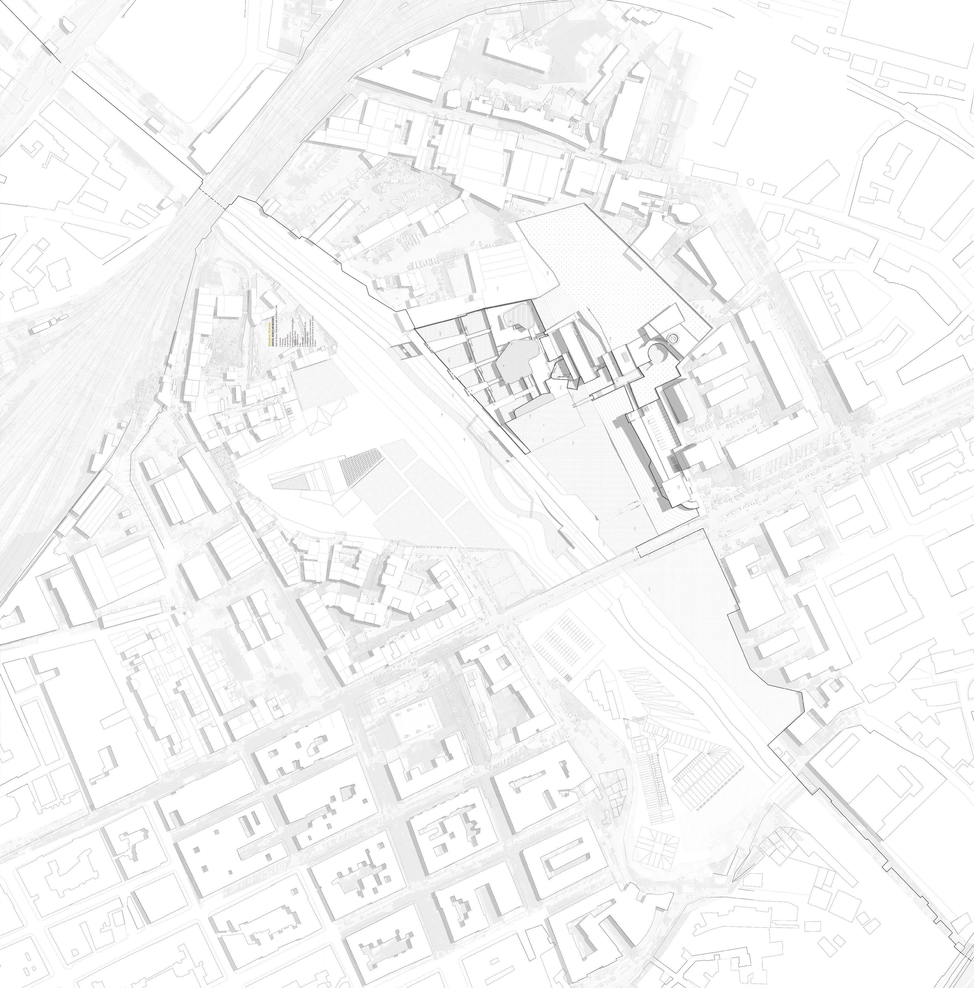 Quattro Canti was one of the rst examples of Baroque town planning, (completed in 1620). It foregrounded a morphological formality that reached its apotheosis with the districts of Liberta and Politeama in the late 19th Century. Re-Scripting Palermo Stories sets out an alternative approach to organising space, one built on the structures of lm, literature and poetry (particularly the cantastorie of radical Sicilian poet Ignazio Buttita). Narrative, sequence, and frame replace order and geometry as governing strategies. e four Canti (meaning ‘corners’ but also ‘districts’ and ‘songs’) are inverted to form a forum for performances; a library, rehearsal spaces, print workshops and recording studios surround public spaces of debate. e classical order and materiality of the Quattro Canti is challenged; stone is detached from ground, allowing an appropriation of city space.