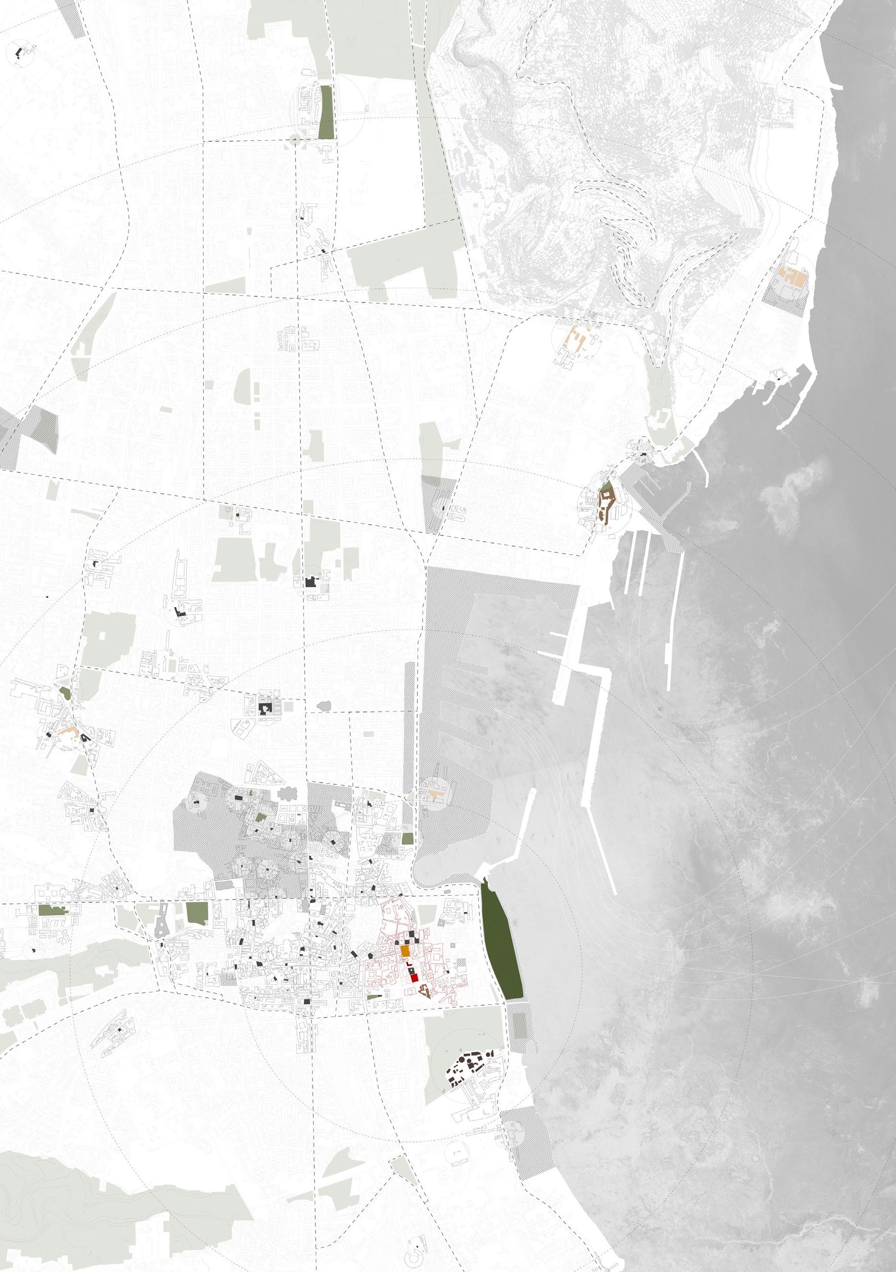 e clashing morphologies arising from these two conditions embody di erent understandings of pattern: one of time (dwelling in landscape), the other of geometry (order over landscape). Working in Palermo means working between these two patterns, extremes of incidentality and ideality. Tracing Incidentalities and Idealities develops from the colours and patterns of Sicilian tiles (and the landscapes they both describe and idealise) and the relics of the ancient city walls and Castello a Mare. e tiles, which adorn dwellings and palaces, are deployed as markers of the landscapes they represent, investing sites with the possibility to cultivate growth. Archaeological fragments are developed into architectures that work with the patterns of this new tiled landscape, and the overlapping histories of the city and site, creating a miniature of the city inside Castello a Mare. new city-in-a-city reconciles the interface between the harbour and the city.