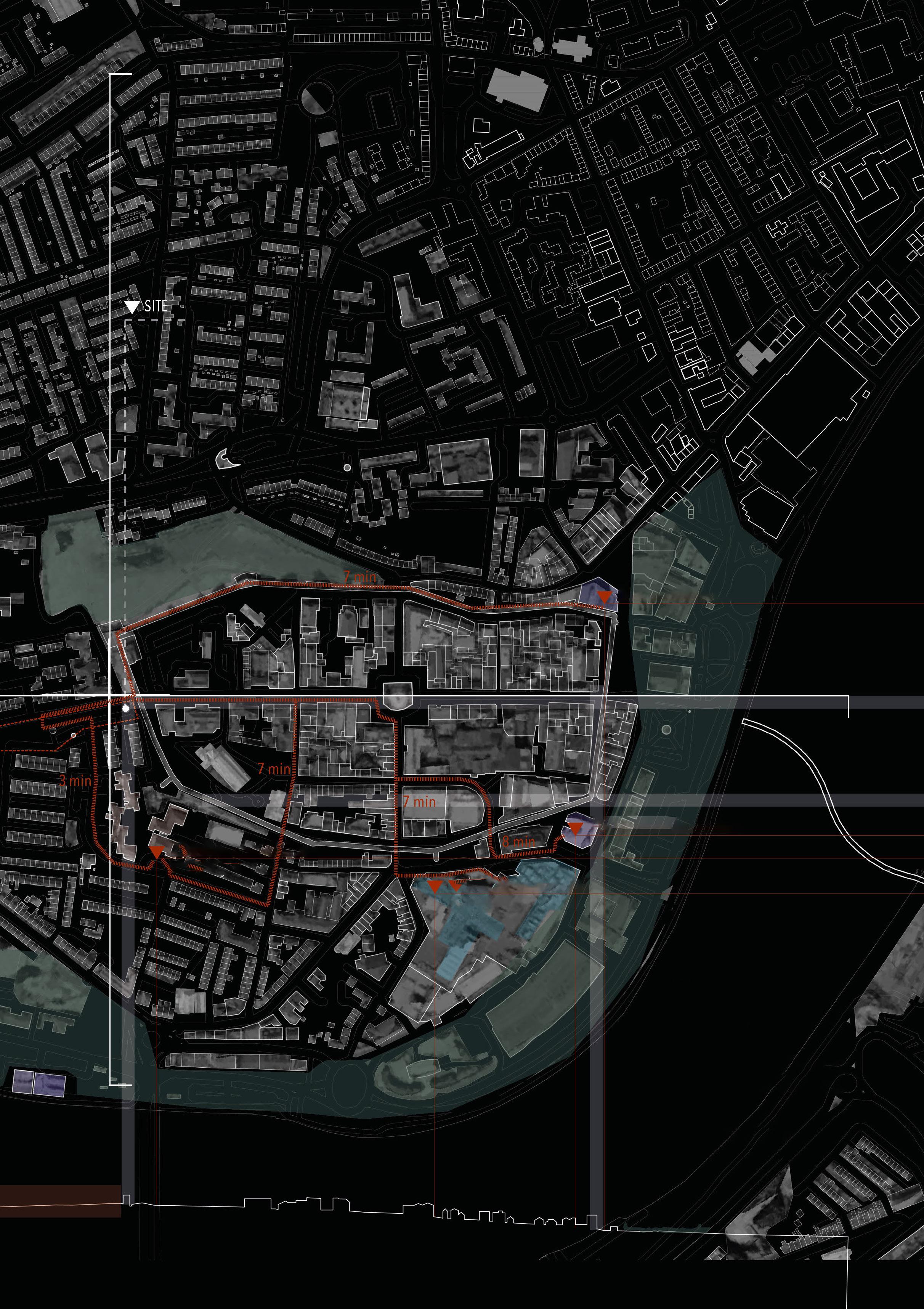 This project aims to re-connect the city with the river, transforming the existing ‘eco-tone’ using the concept of ‘soak’ both as a research methodology and design principle to break down the post-industrial, man-made edge and replace it with a new, re-wilded, tidal landscape which celebrates the relationship between Derry’s people and the river.