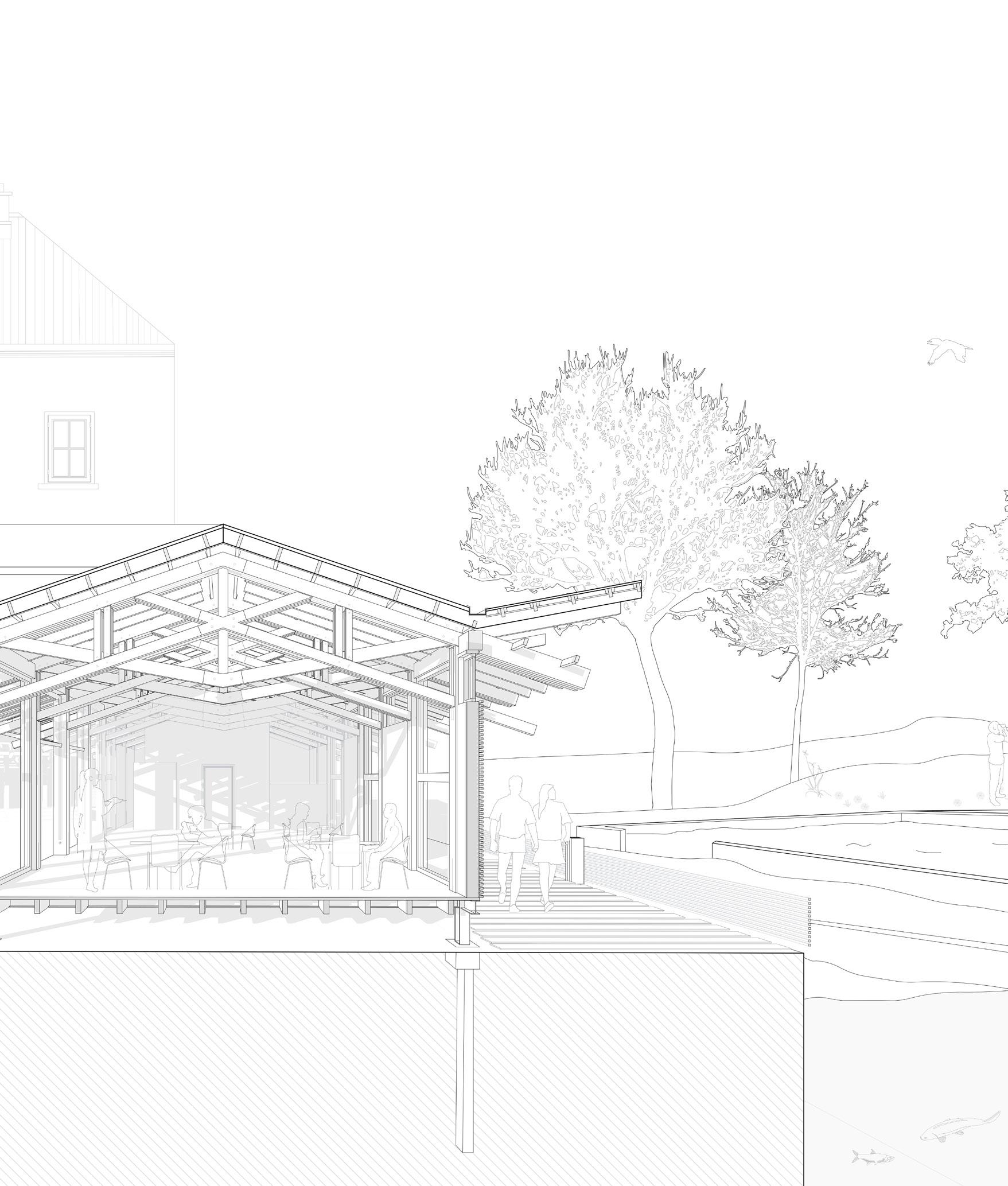 The concepts of infiltration, percolation, and sedimentation represent different hydrological and engagement processes between people and water. Through embodied and psychological immersion, the project reintroduces a hydrological cycle into the site as part of an inter-species pathway to the river. Soak provides space for wild swimming, community gathering and ecological learning in a re-wilded, tidal landscape.