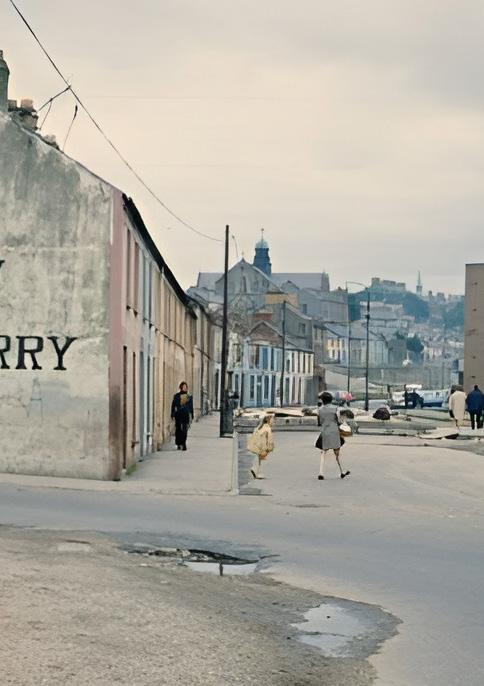 Derry has long been established as a city of walls. During ‘The Troubles’ in Northern Ireland a series of ‘Peace Lines’ or ‘Peace Walls’ sprang up in most cities in an attempt to prevent acts of violence and anti-social behaviour between religious communities. The Fountain Peace Wall is Derry’s last remaining Peace wall, separating the protestant, unionist community from the more catholic communities which surround it. It can be considered in a sense to be one of the most contested conditions of the ‘in-between’ in all of Derry. The Fountain itself sits on the site of the old Derry City jail, demolished in 1953 but for its castellated brick tower.