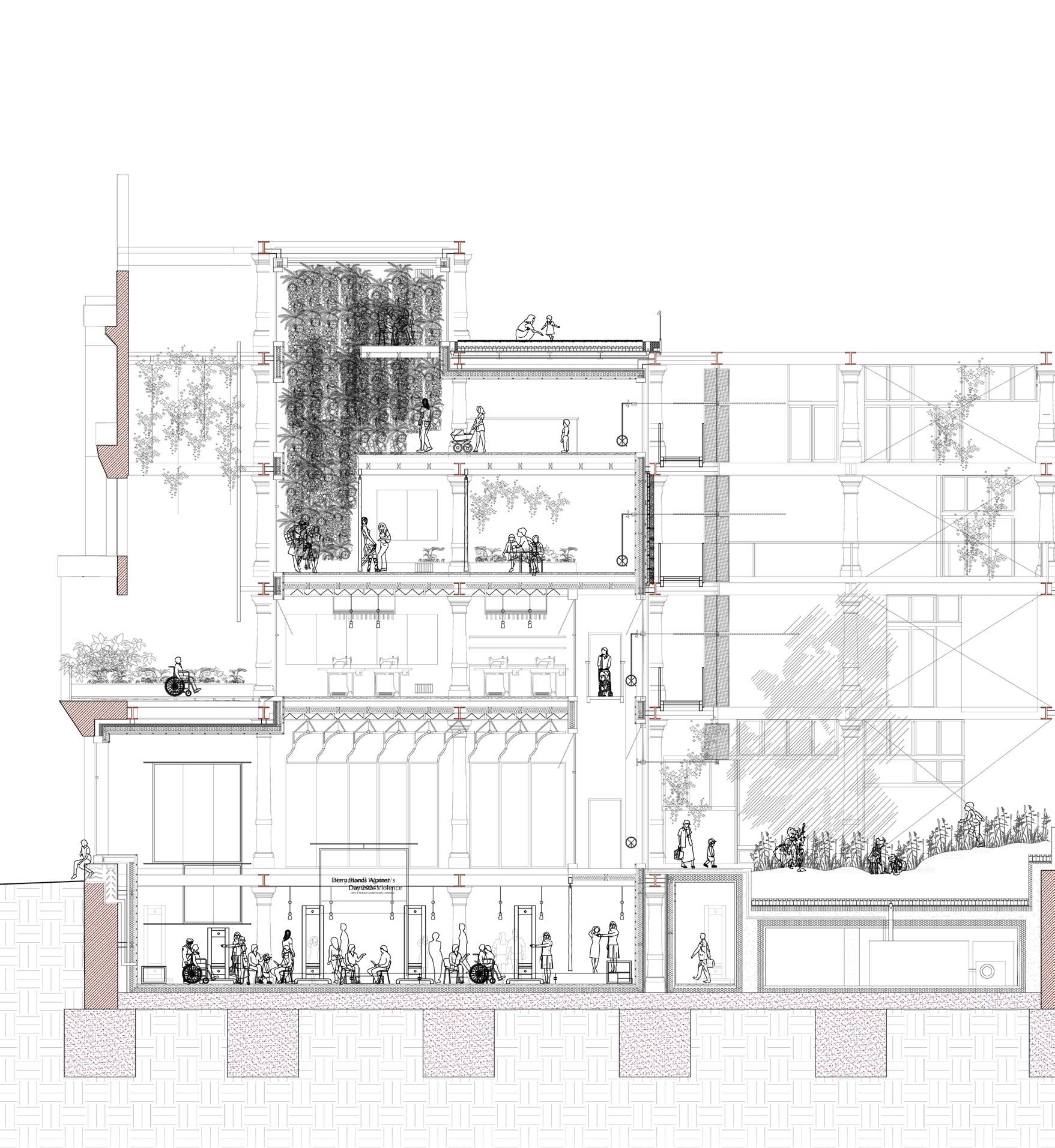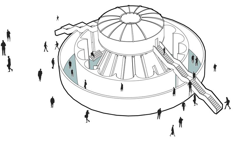 Programme: Green educational route with urban living room, bookstore and exchange, reading room, café and resting space.