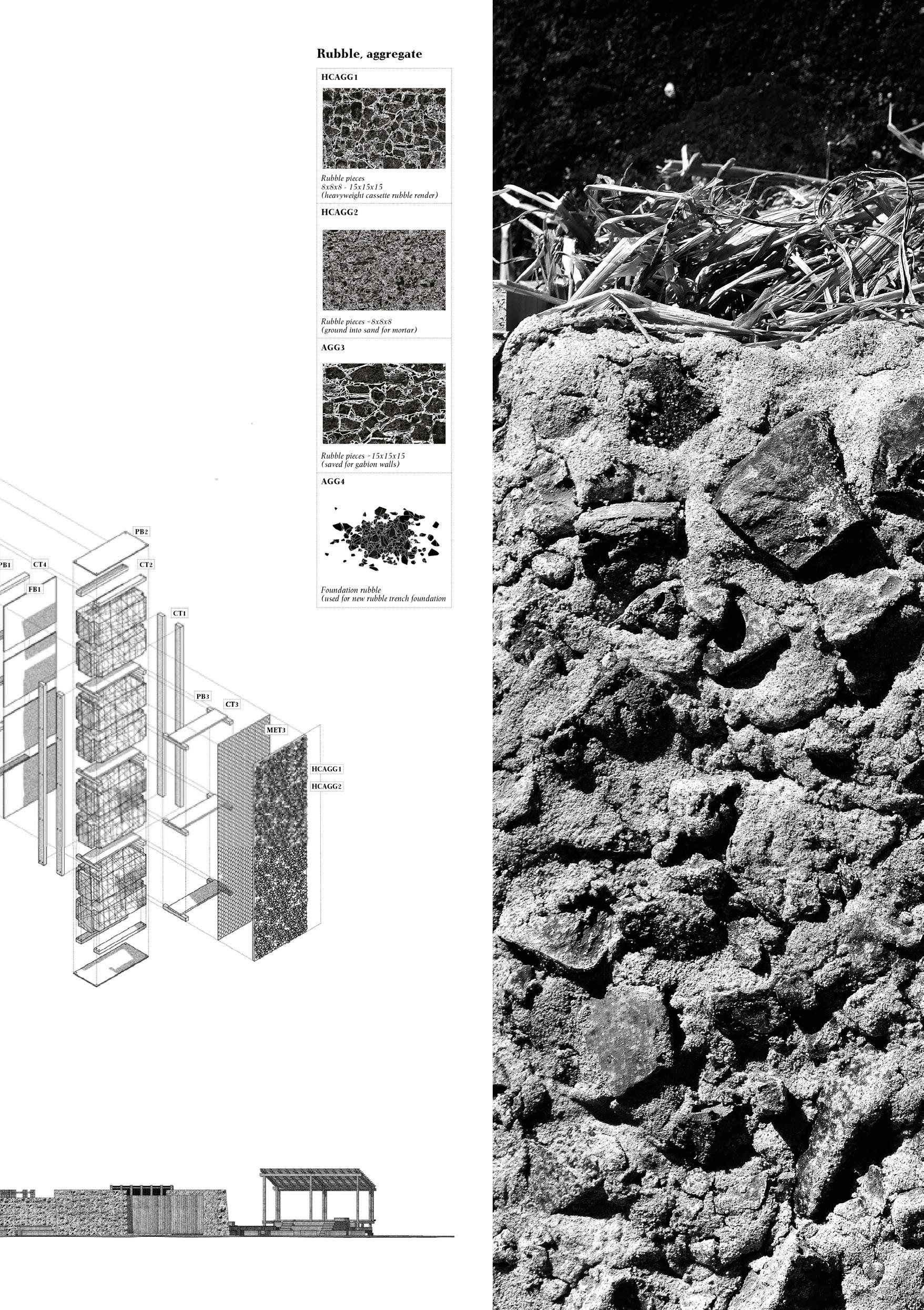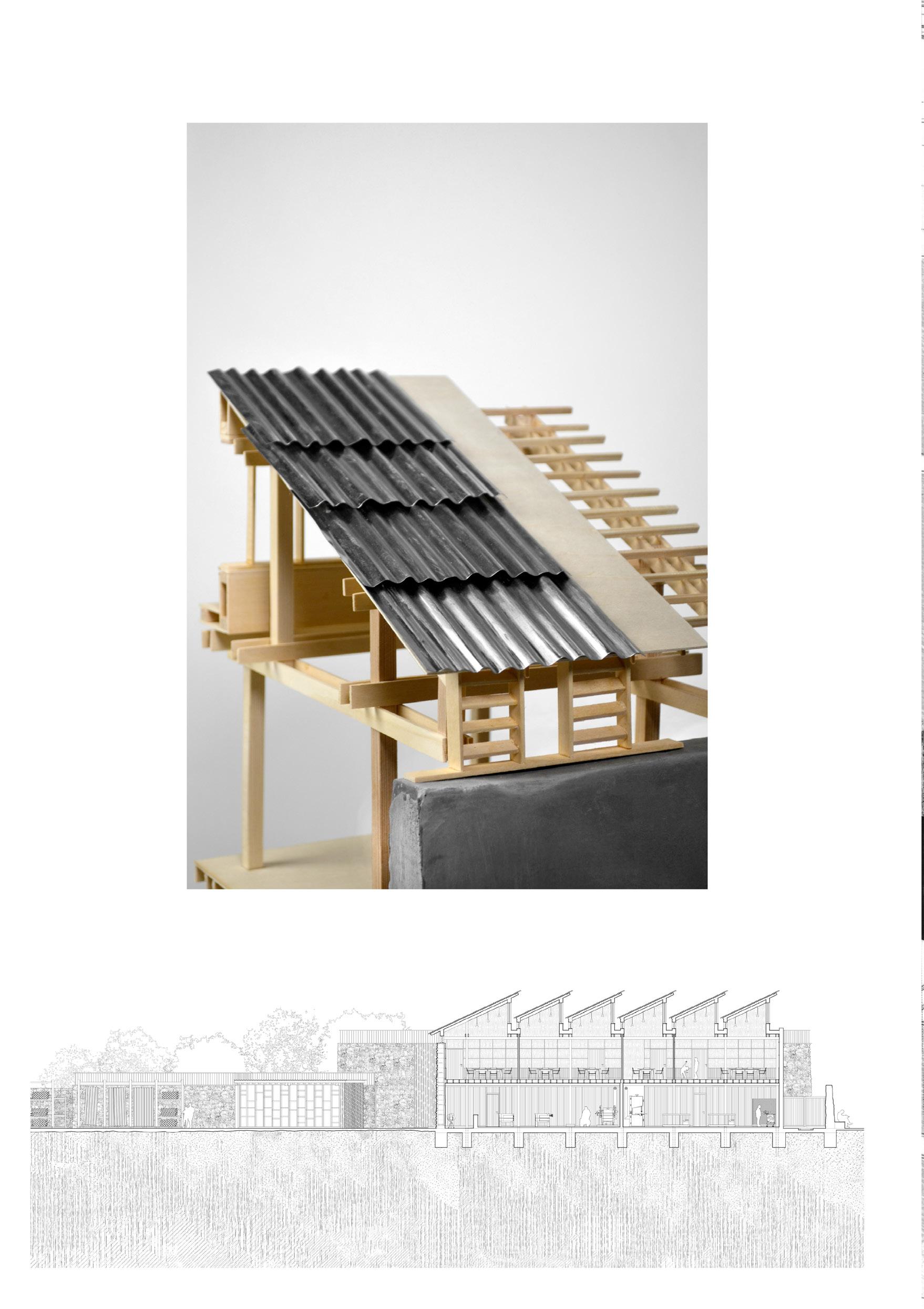 Programme: Construction material repurposing centre; classrooms, workshops, salvage and testing yards. Further experimental structures along a reclaimed streetscape.