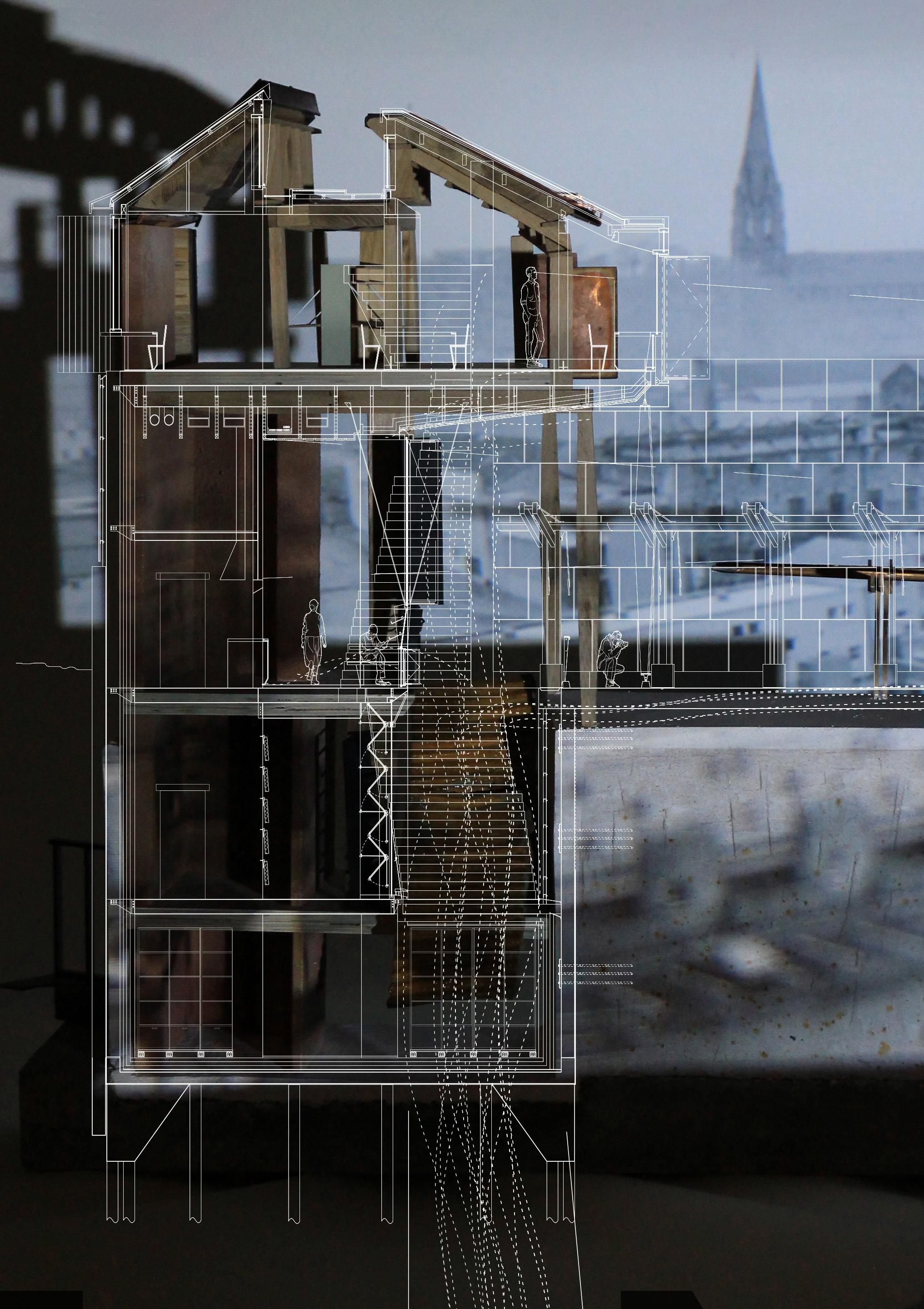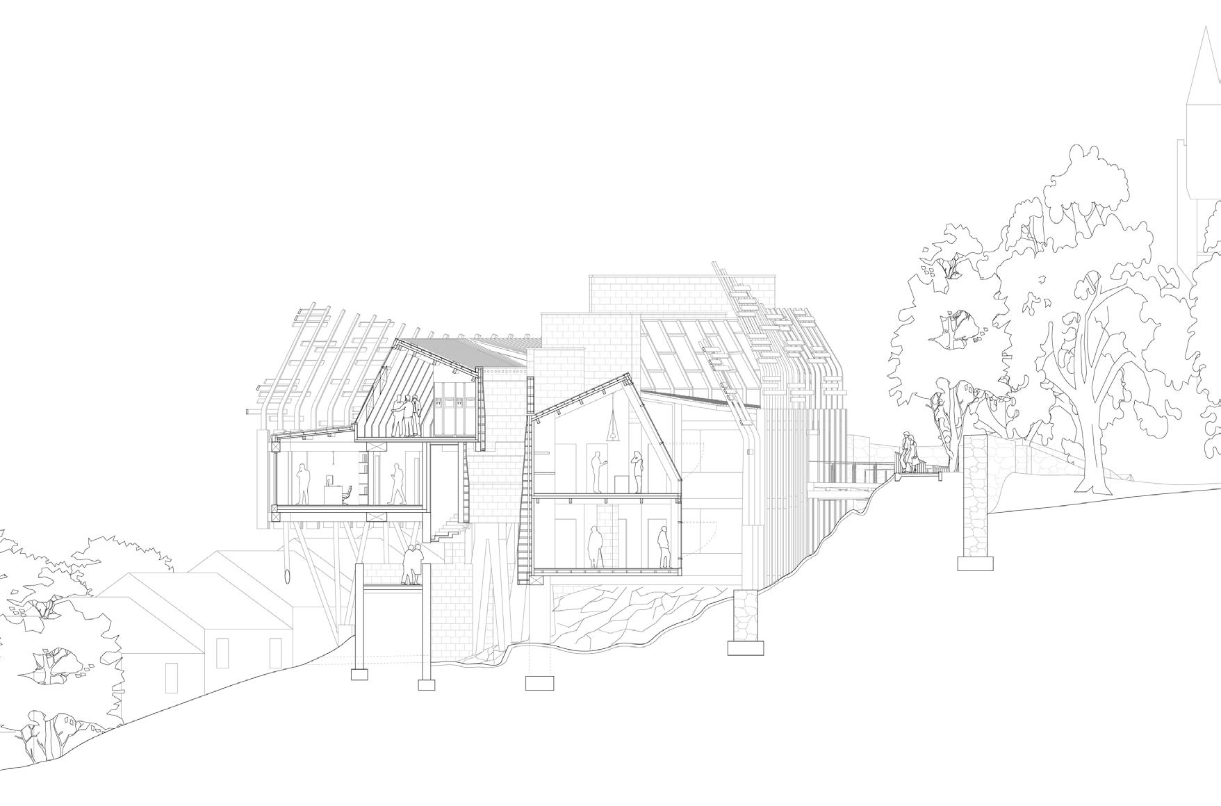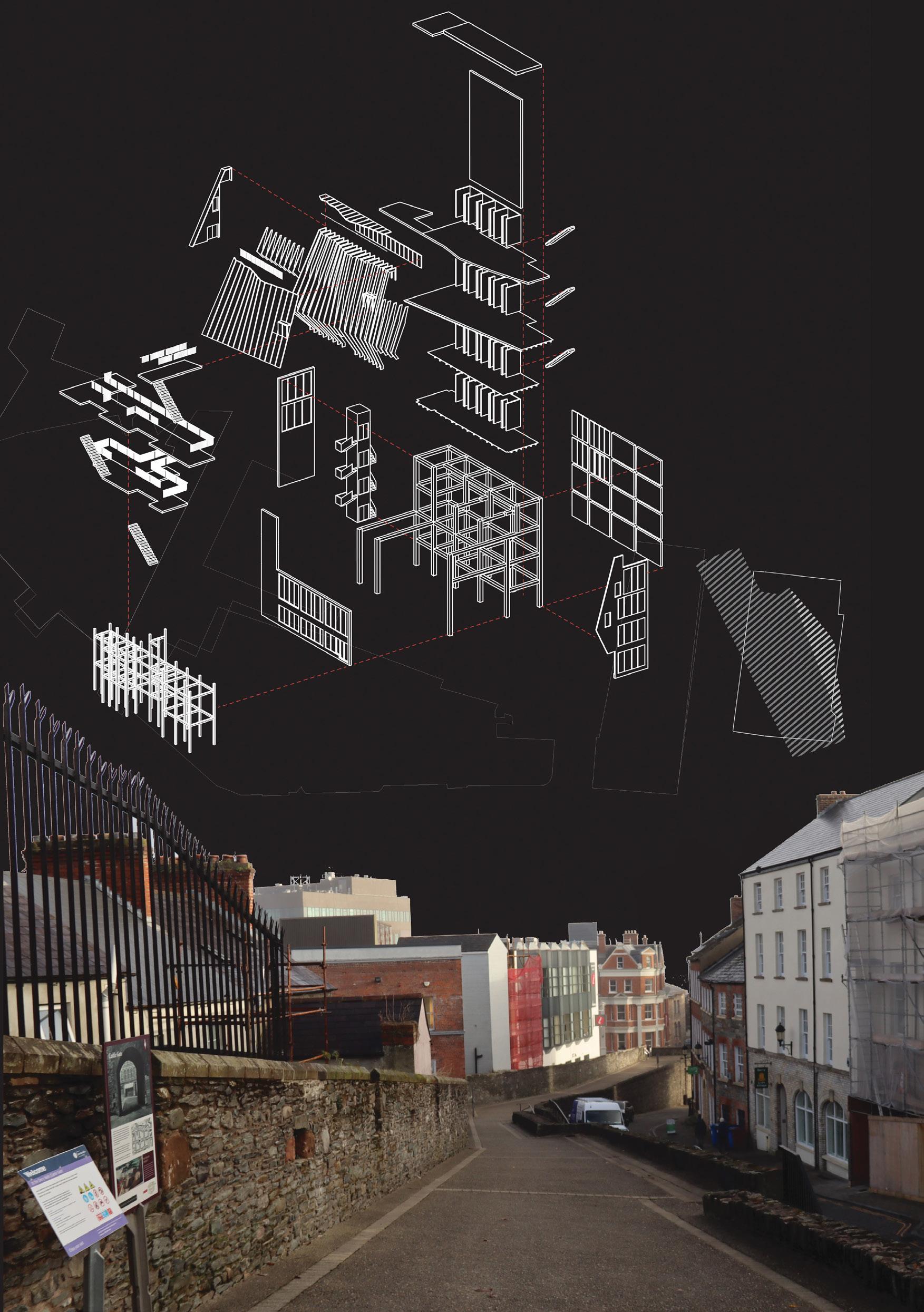 The proposal offers a series of working and learning spaces (in a multiplicity of relationships to the city wall depending on their function), enabling various forms of art production for the people of Derry, including retreats for artists in residence and associated social activities in the heart of the city.