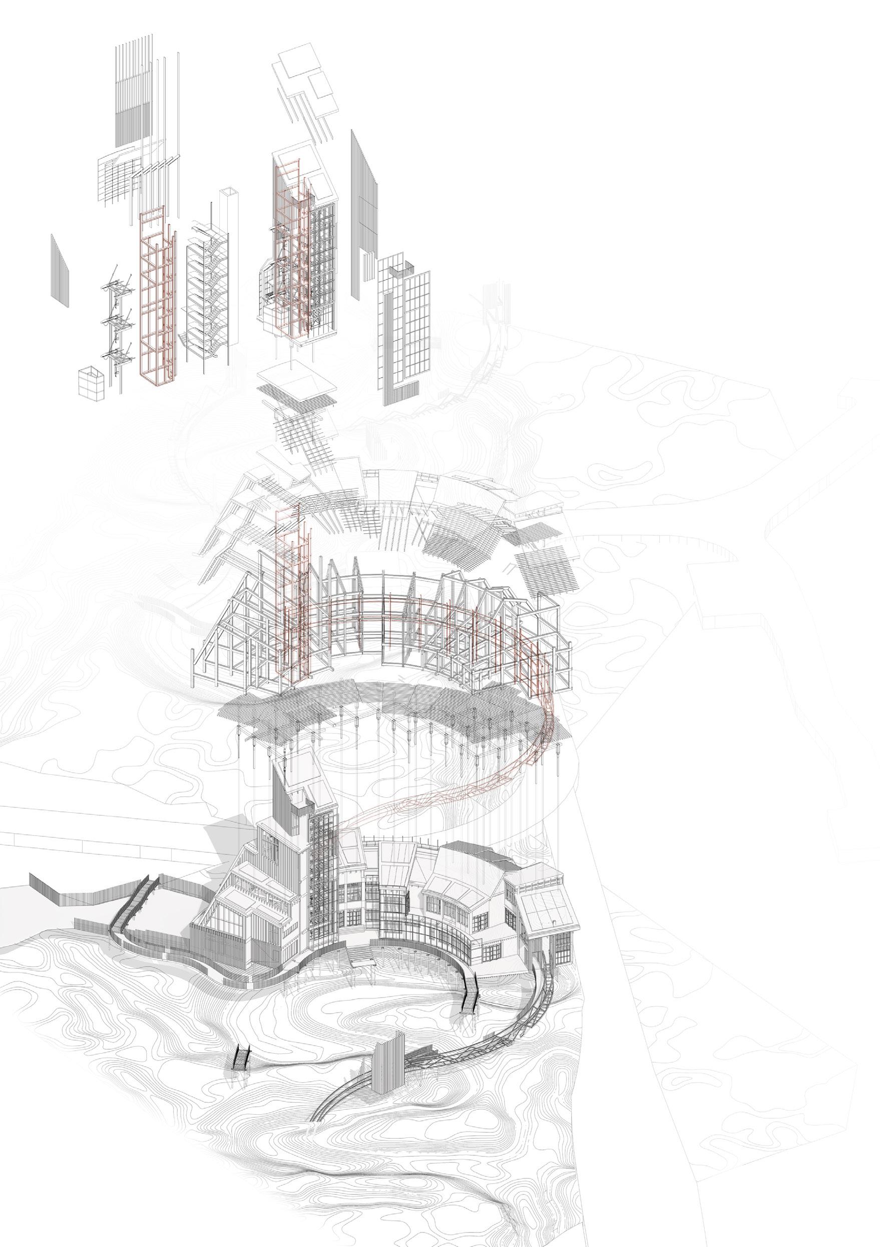 Left. Assembling Mechanisms of Deconstruction. Exploded structural axonometric.