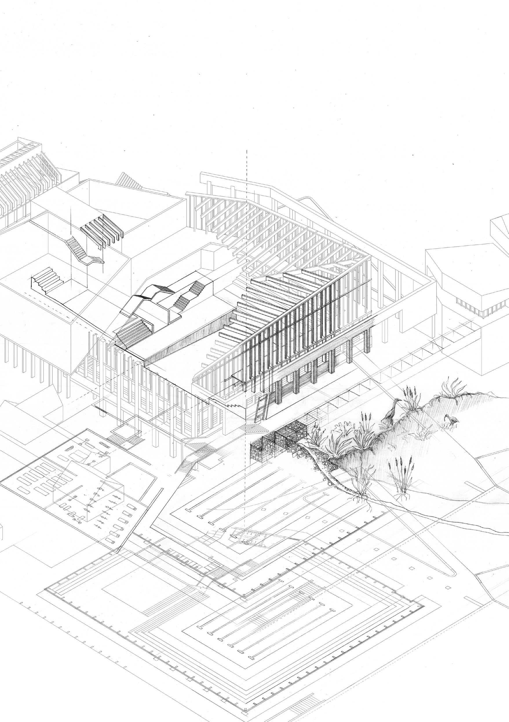 The project’s design strategy is to intersect with the river’s edge, forging from the existing site gradient an embedded relationship between landscape and built form and a canopy design which incorporates both formal structural approaches and walk-able landscape. The project programme aims to foster communication and understanding between communities through a place of learning, social engagement, knowledge exchange and improved natural habitat.