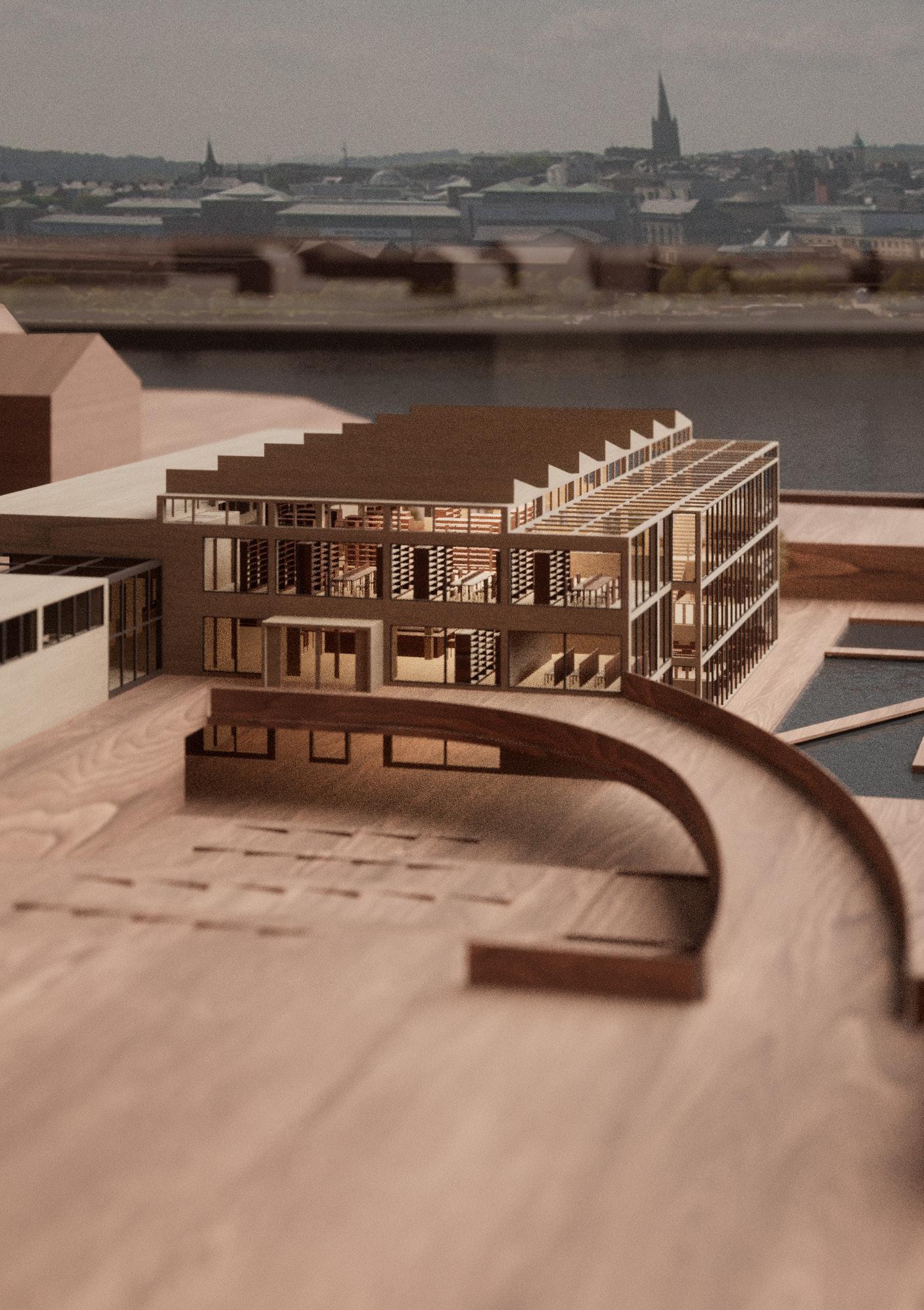 To address this city-wide need for cultural and community integration, a new building is proposed as a hinge between the Irish and British communities, located adjacent to the over 100-year-old Craigavon Bridge, the principal access road to the city centre. The site was once the location of the largest shirt-making factory in the UK but has long since been abandoned and covered in vegetation. The design seeks to form a bridge between; the city of Derry and it’s river; the urbanity of the town and a renewed natural riverside landscape and the two cultural communities.