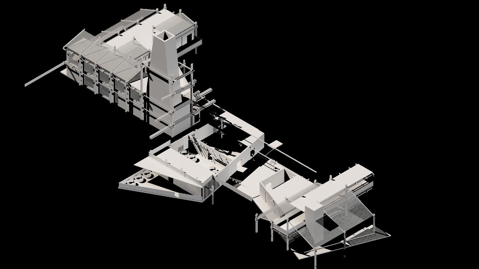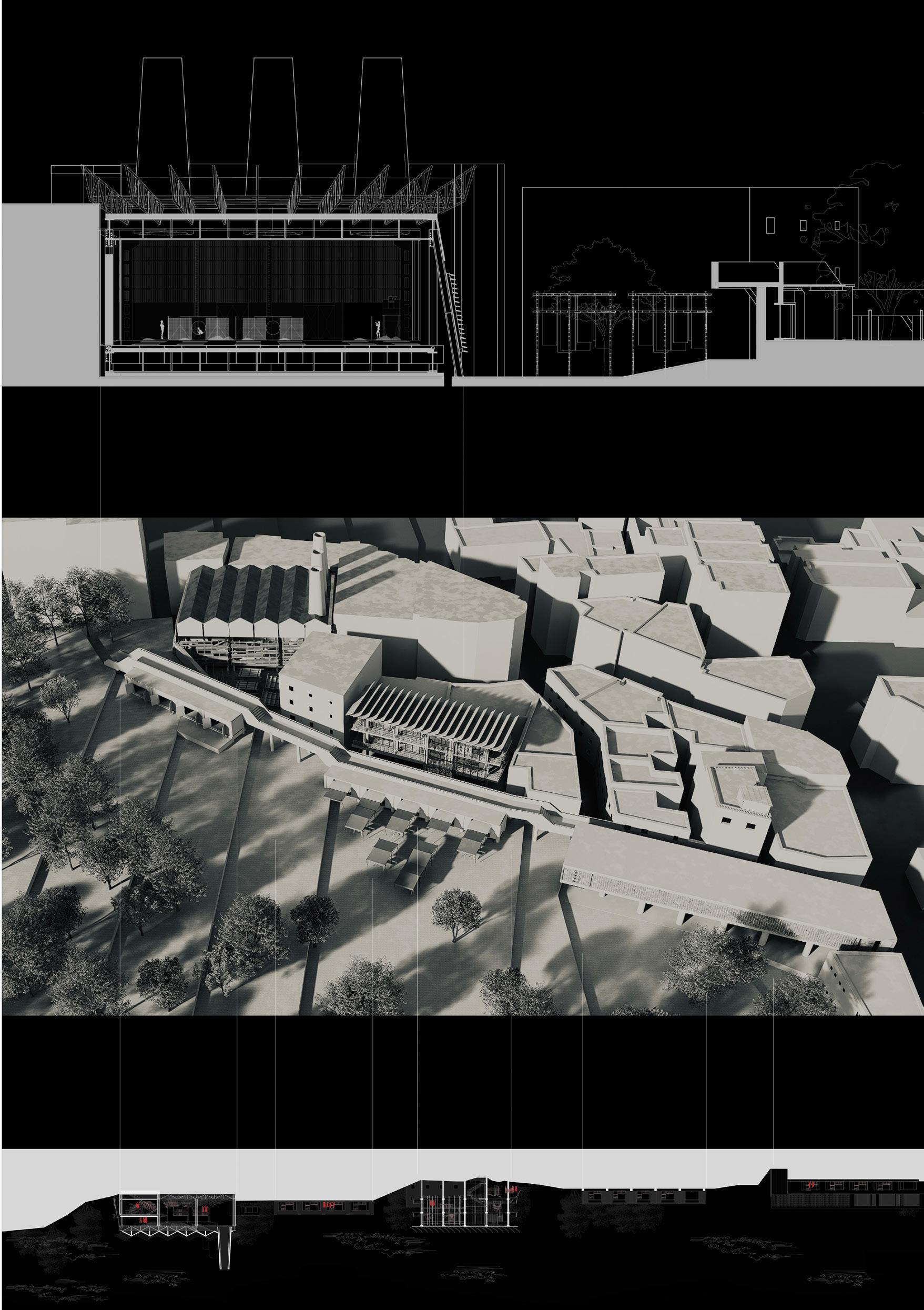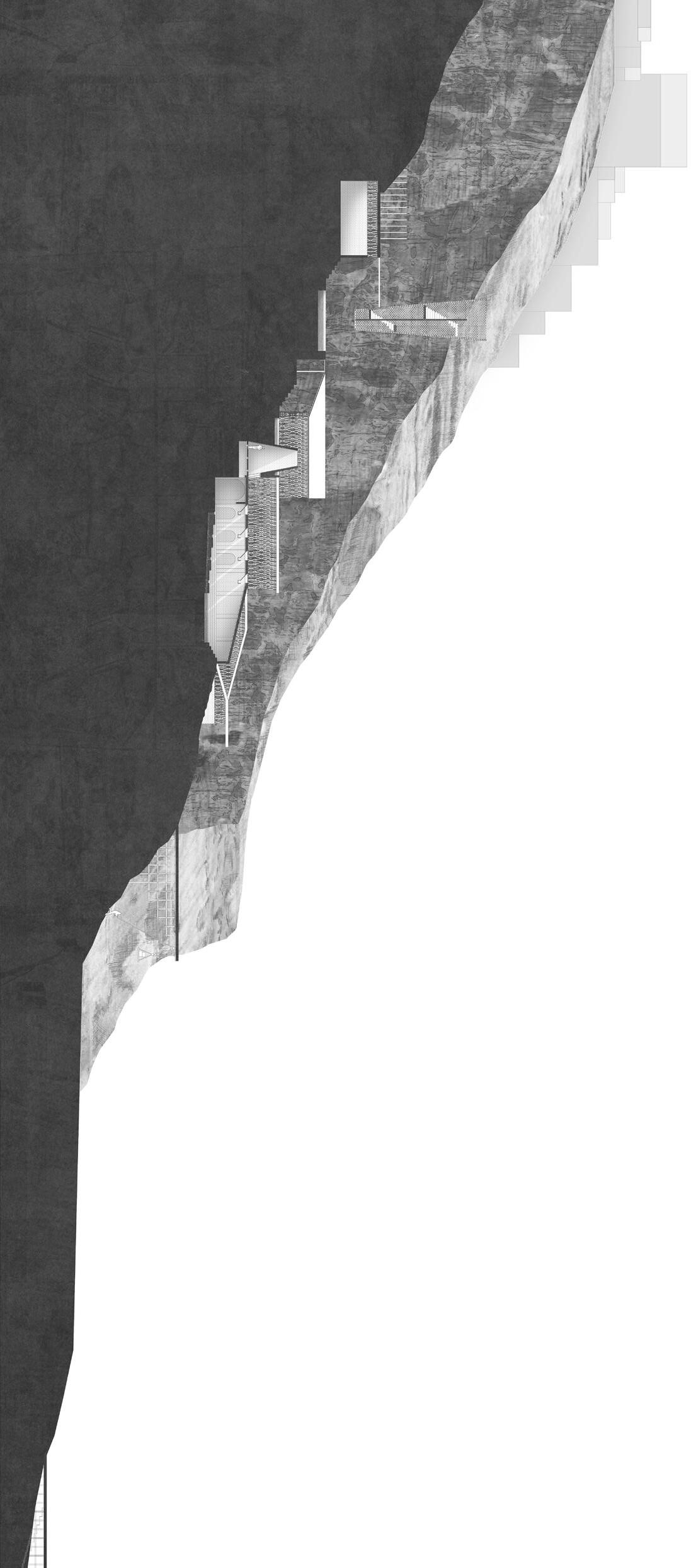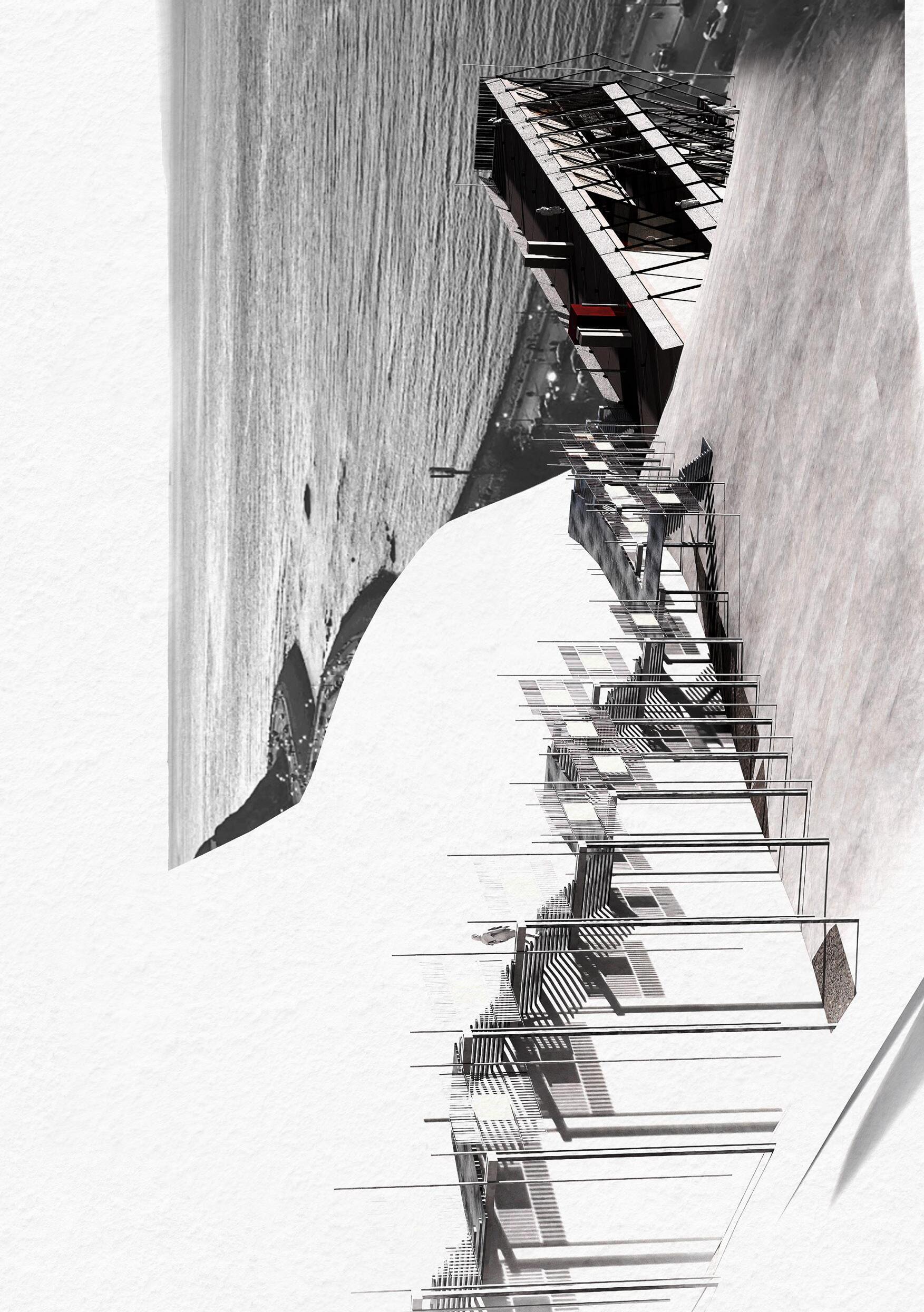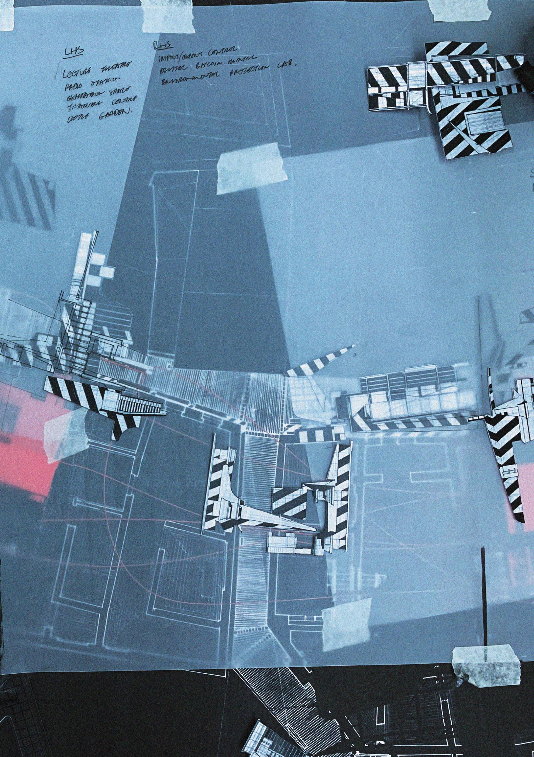 A manipulated legal framework provides an opportunity to reclaim territory in a move against the zeitgeist. This series of chance operations becomes a form of cut-ups that projects back onto itself simultaneously. Opportunistic architectural interventions cloak themselves in the historic narratives present in the Petit Socco, addressing various issues ; corruption is tackled through a digital stock market, censorship is combatted within a free-press publishing house, pollution monitored from a hydrological laboratory, and surveillance obviated through a telecommunications hub.Host and guest switch roles with increasing acceleration, the parasitic visitor corrupting the former only then to be corrupted themselves. Hidden in plain sight, the architectures play with their histories, revealing and concealing certain aspects via a series of exposed seams. Collectively, they form the Interzone.